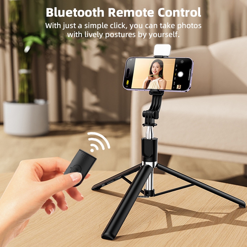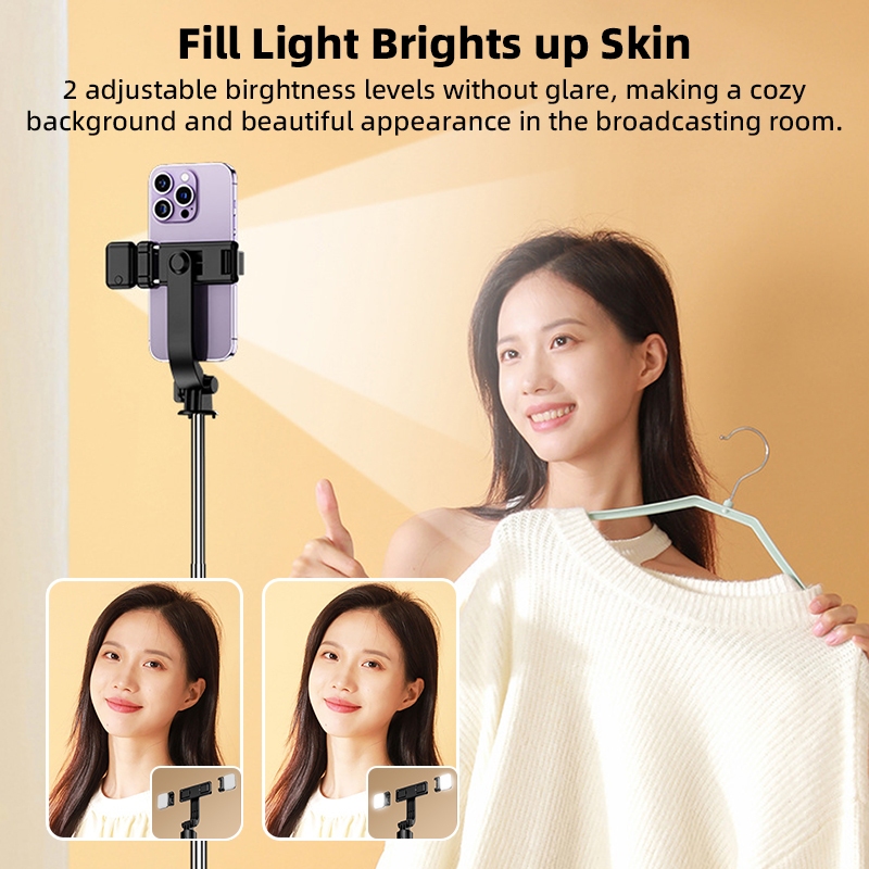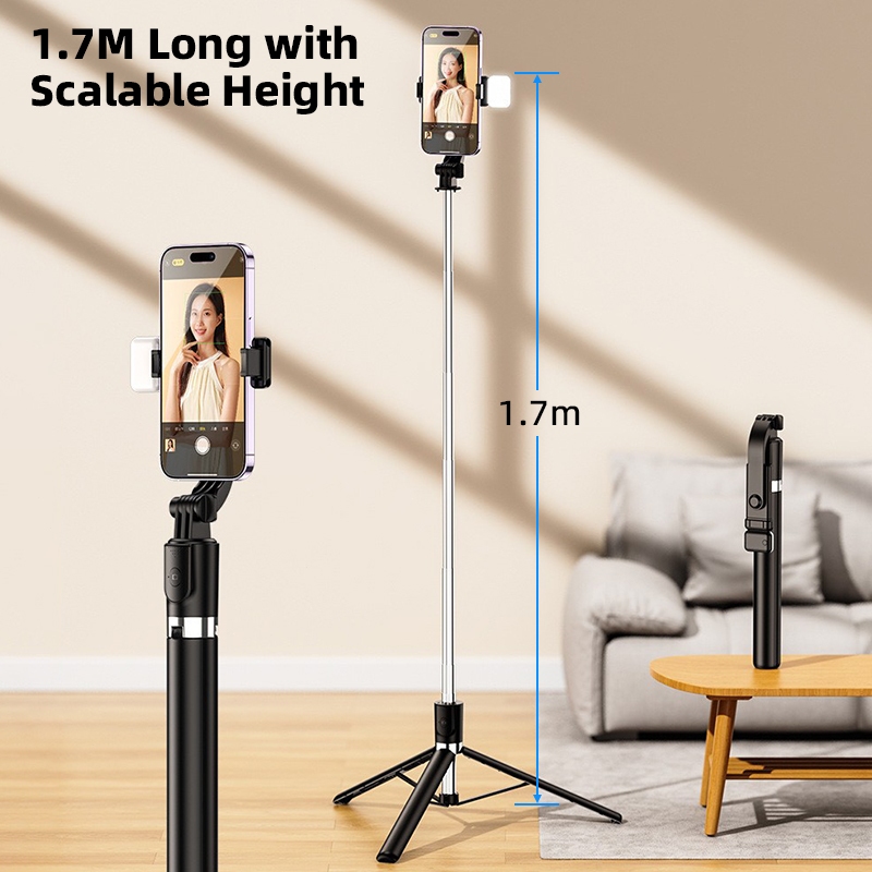 GOOJODOQ Selfie Stick Live Tripod Bluetooth Selfie 1.7m Stainless Steel Fill Light Rotatable For Phones