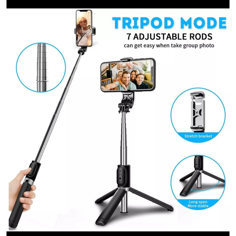 Tongsis Tripod 3in1 Remote Selfie Bluetooth R1 - Tongsis Bluetooth Holder hp tripod serbaguna