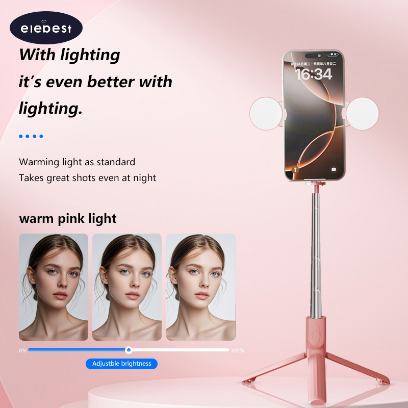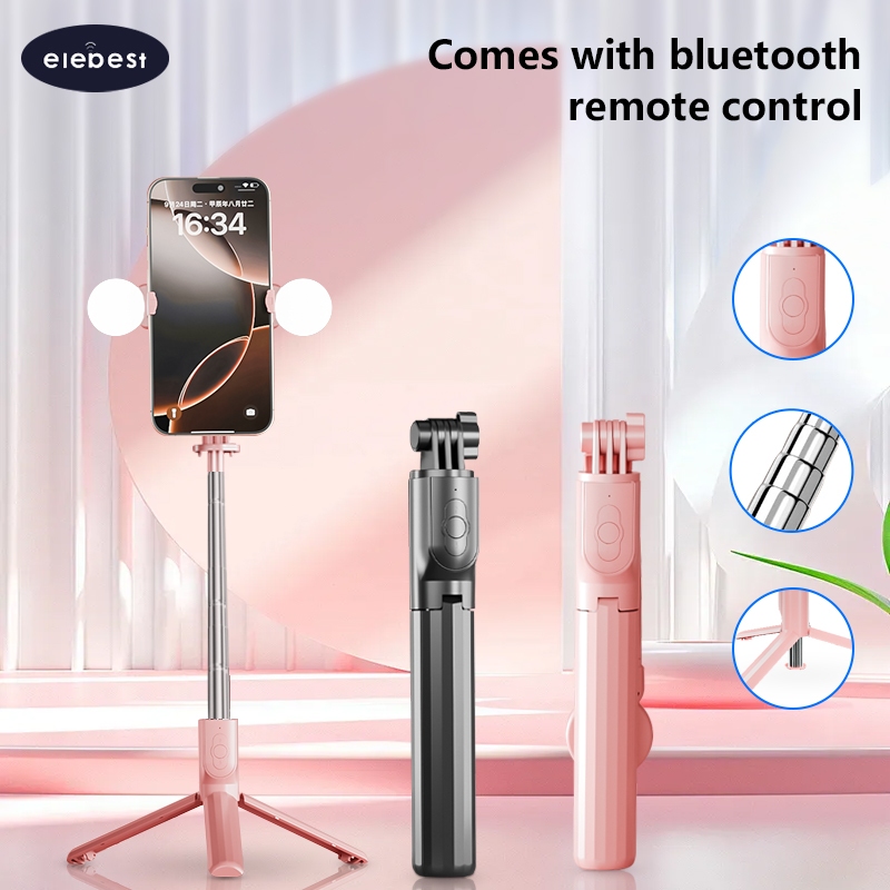ELEBEST Q07 Tripod Mini Selfie Stick Tongsis 3 in 1 Tongsis Portable 100CM LED Fill Light Bluetooth Selfie Stick Remote