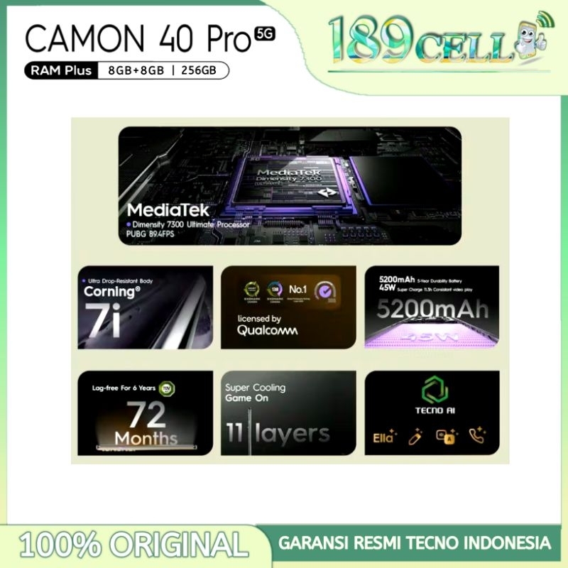 TECNO CAMON 40 PRO 5G NFC RAM 8/256GB | CAMON40 PRO 5G | CAMON40PRO GARANSI RESMI TECNO INDONESIA
