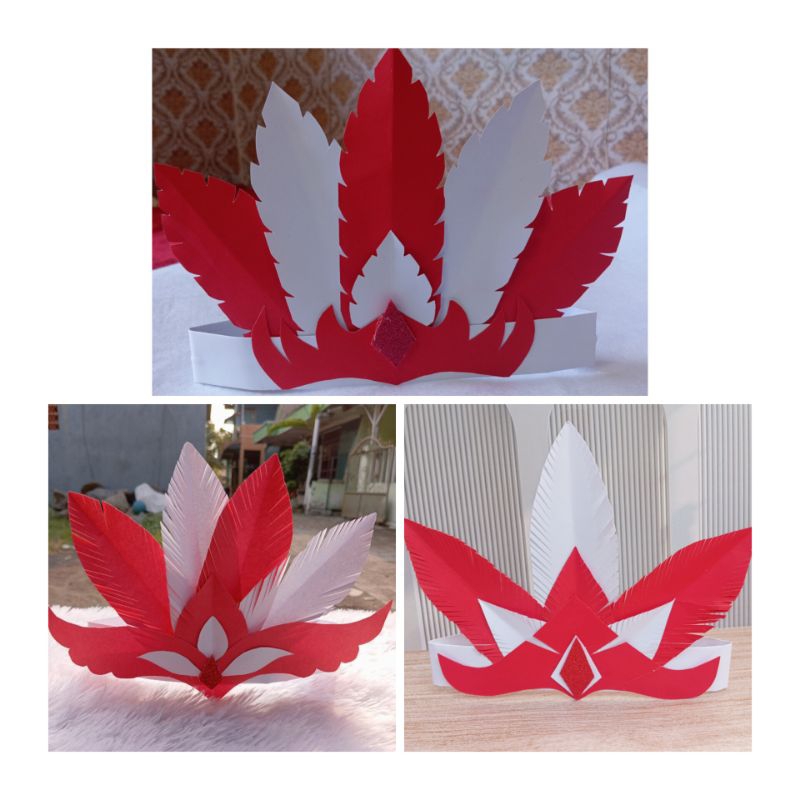 (READY STOK)Mahkota tari Hiasan Karnaval Agustusan Mahkota Kertas Hiasan kepala Agustusan Merah Putih Bando merah putih
