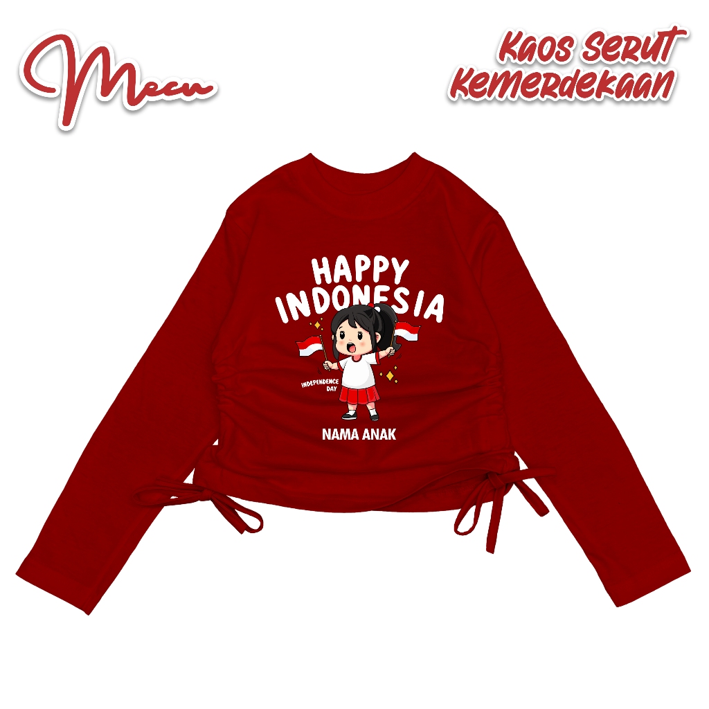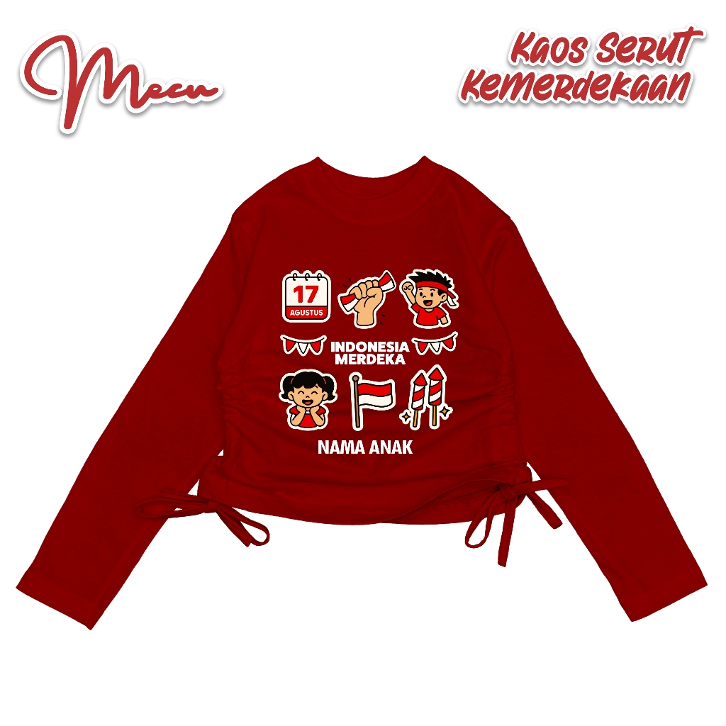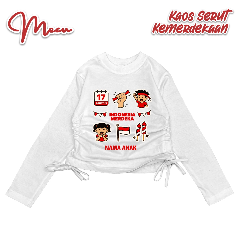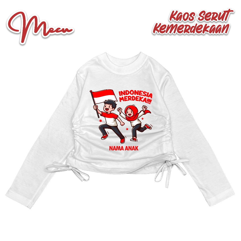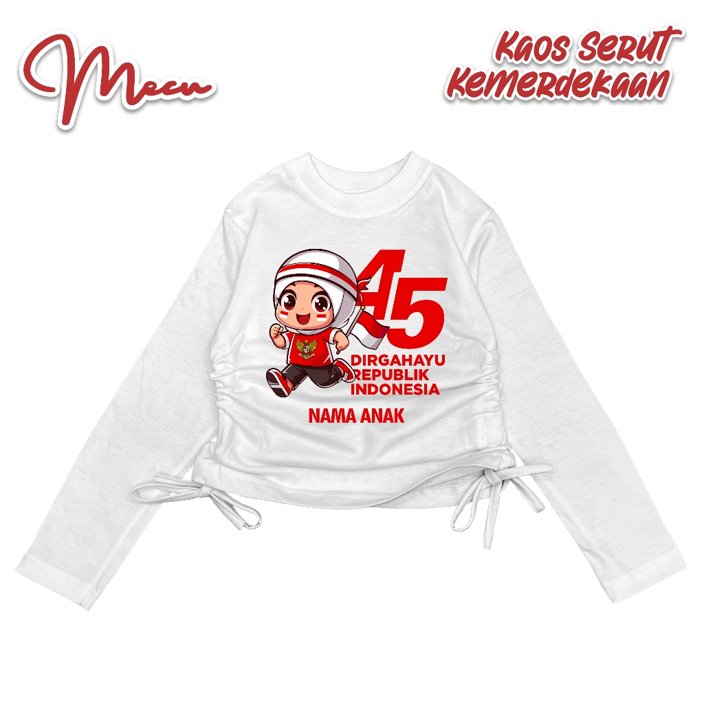 Baju Kaos Crop Serut Anak MECUKIDS Usia 4 5 6 7 8 9 10 11 12 Tahun Lengan panjang Custom nama Spesial Kemerdekaan 17 Agustus