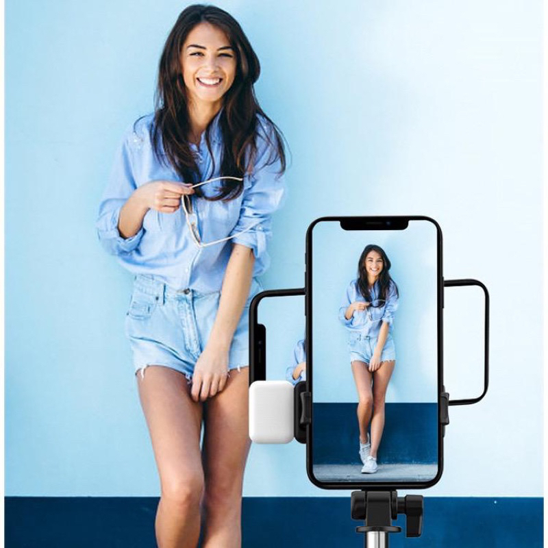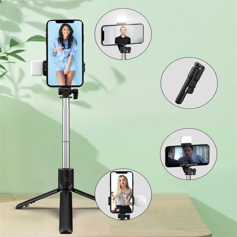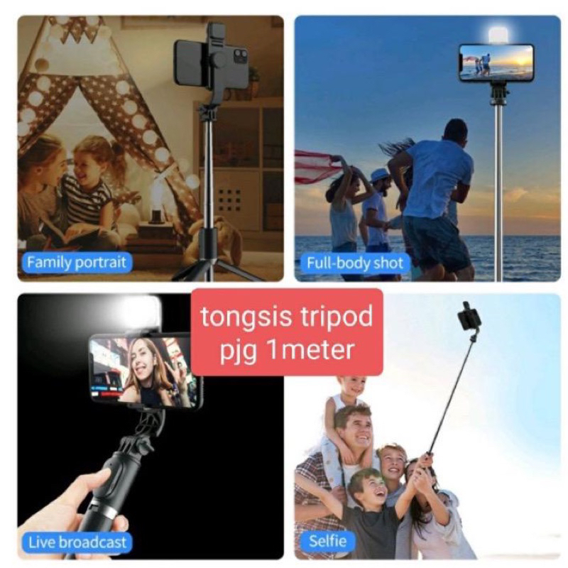 TONGSIS SELFIE TRIPOD LAMPU LED BLUETOOTH REMOTE CONTROL 4 IN 1 SELFIE STICK PROTABLE FLEXIBLE LAMPU LED SELFIE