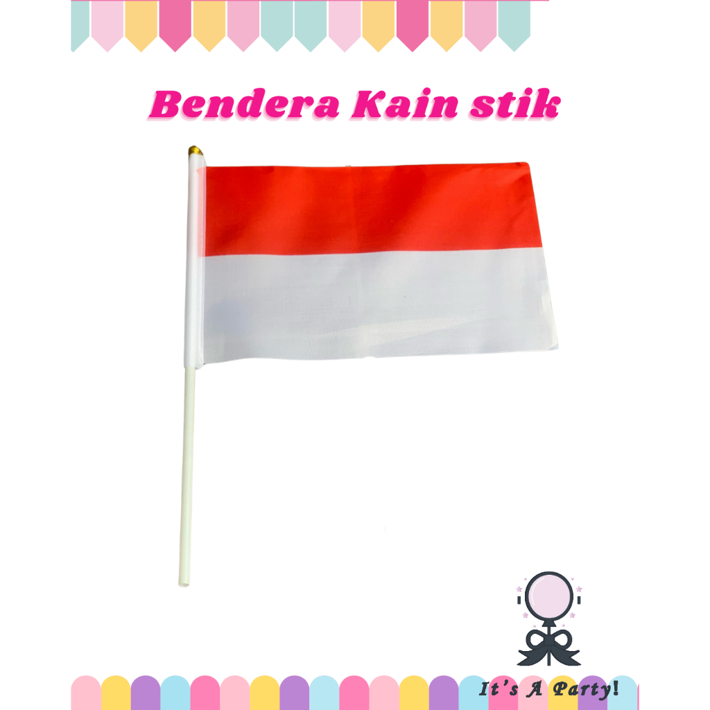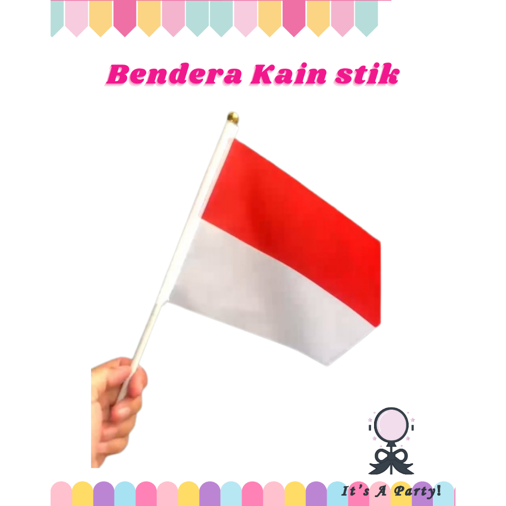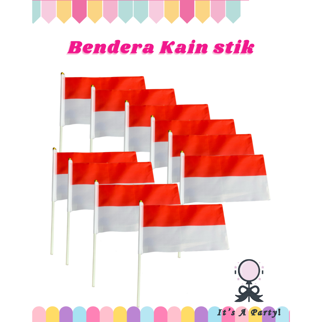 10pcs Bendera Kain Merah Putih Kecil Indonesia Pawai 17 Agustusan Bendera Tongkat Tangkai Merah Putih Kain Bendera Dirgahayu Hut RI
