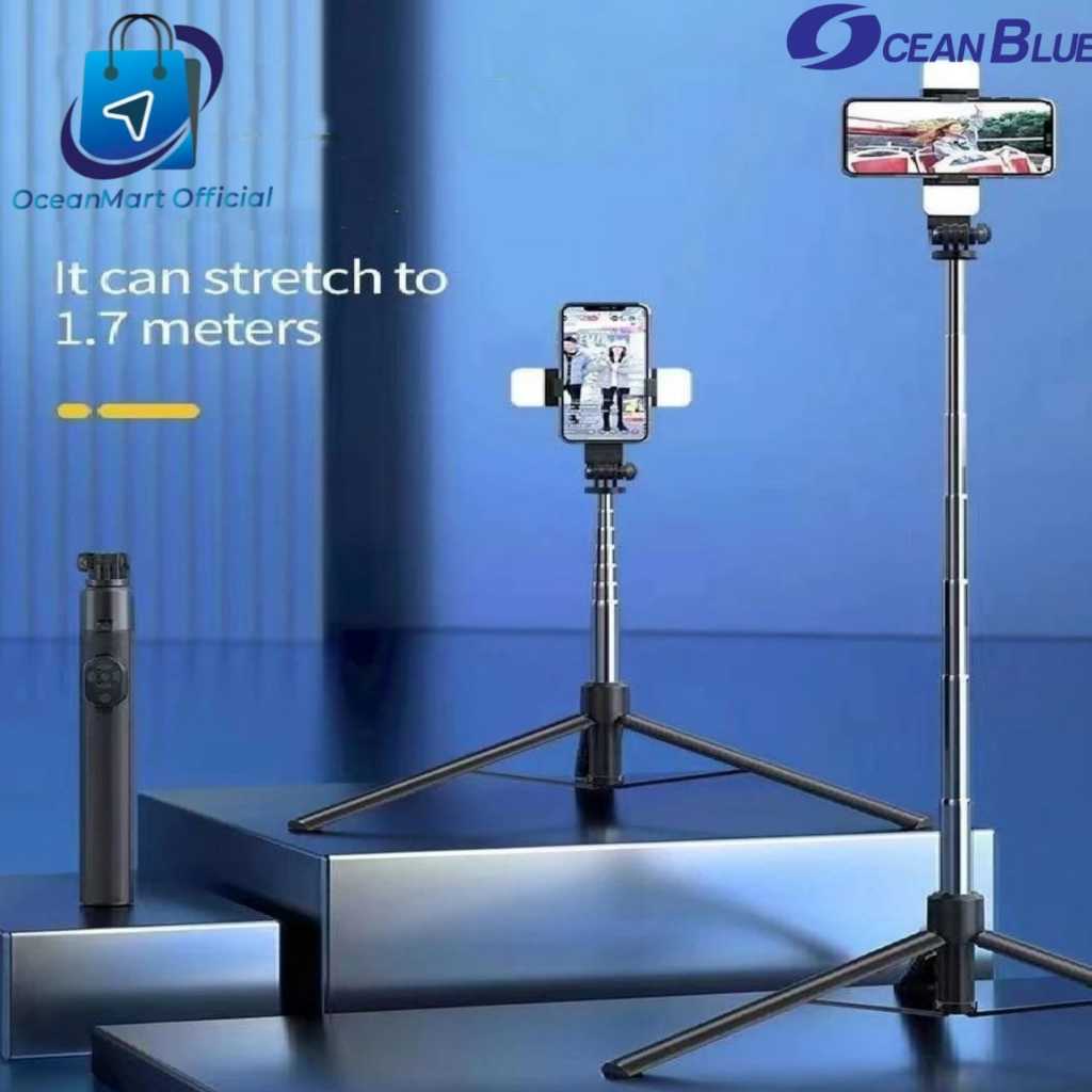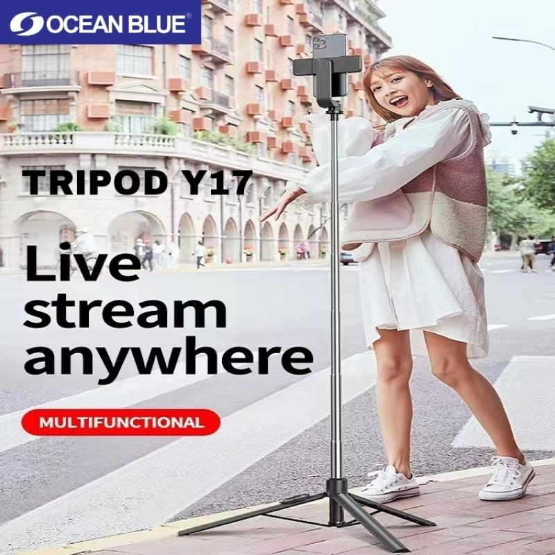 Tripod Stand Holder HP Bluetooth Remote Tongsis Y17 170cm Selfie Stick Oceanblue Penyangga Handphone