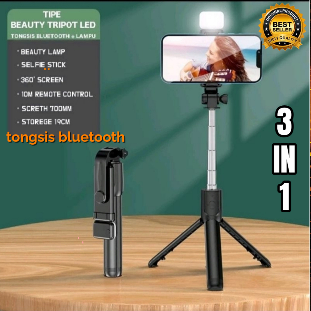 [ BISA ] Simpel Tongsis Bluetooth LED R1S 3in1 Remote Selfie Tongsis Tripod Bluetooth