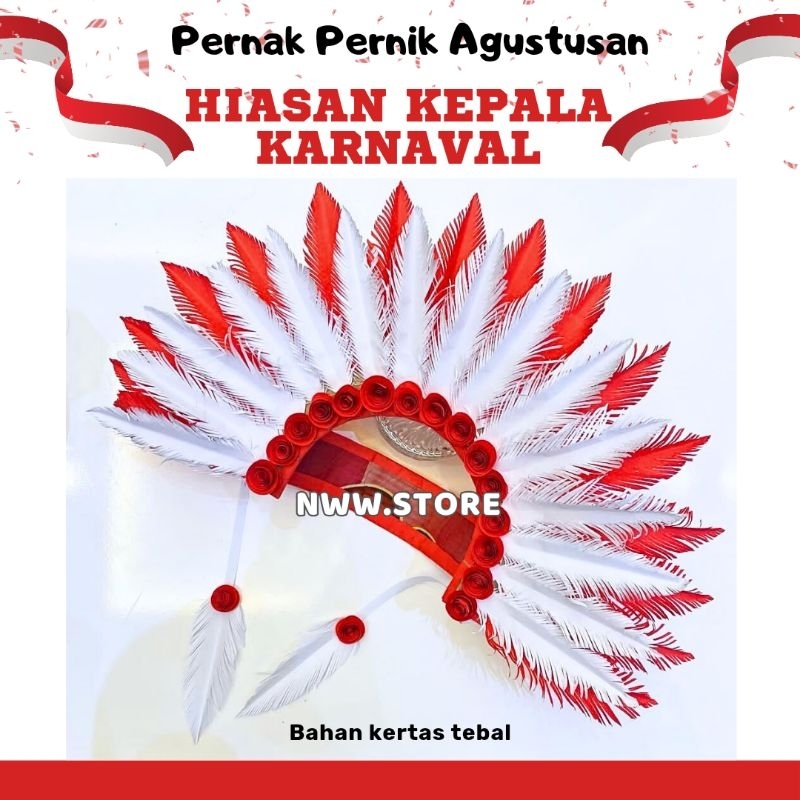 HIASAN KEPALA KARNAVAL TOPI MAHKOTA KARNAVAL BULU KERTAS PERNAK PERNIK AGUSTUSAN