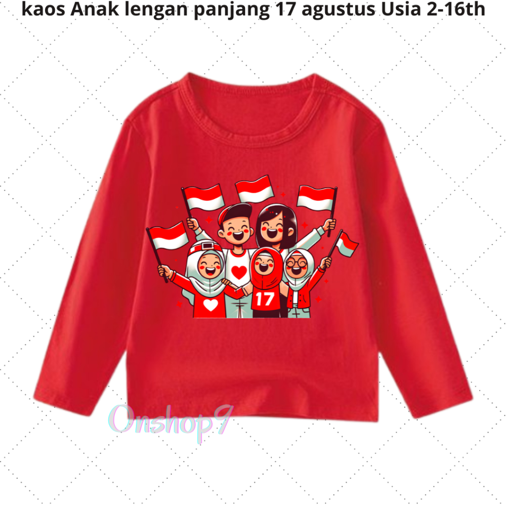 Kaos anak Laki Laki Perempuan 17 Agustusan Kemerdekaan Unisex anak Lengan Panjang Usia 2-16 th
