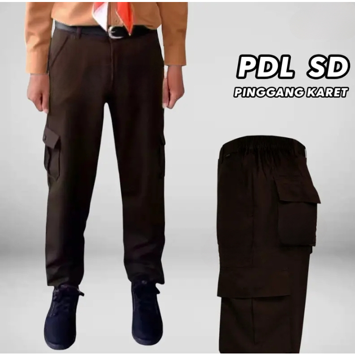 CELANA PDL PRAMUKA SEKOLAH SD CARGO PANJANG WARNA COKLAT CELANA KEMPOL 6 SAKU SERAGAM SEKOLAH