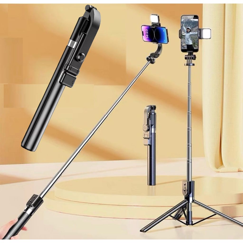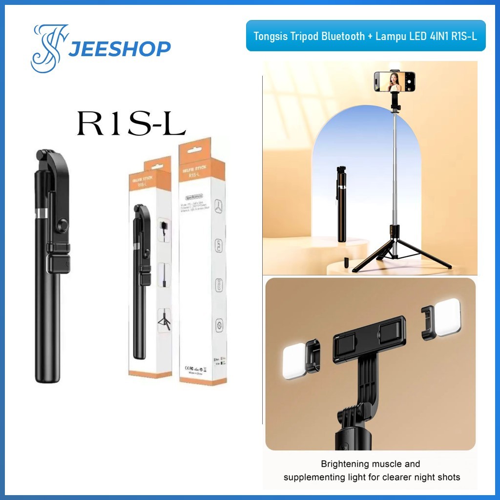 Tongsis Bluetooth 4in1 R1S-L Tongsis Tripod Remote Shutter + Lampu Led 170CM Selfie Stick 360 Degree