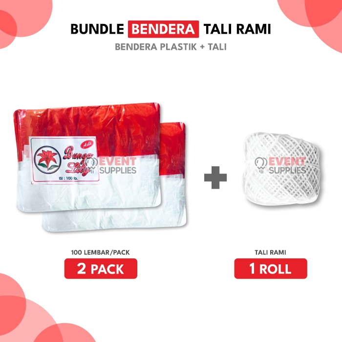 Paket Bendera Plastik Merah Putih + Tali Kenur HUT RI Kemerdekaan