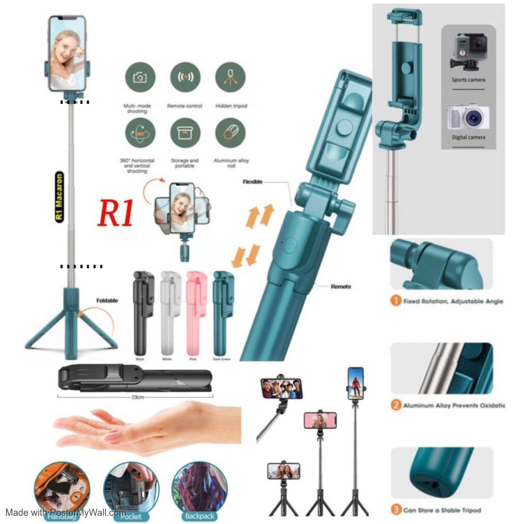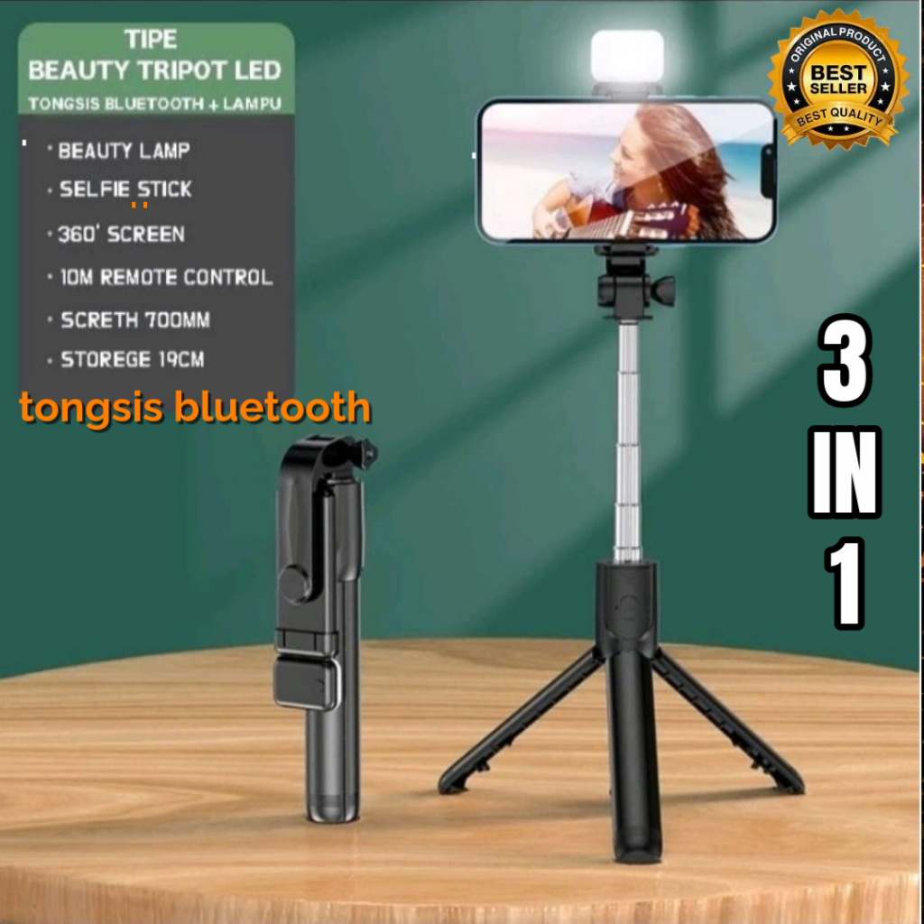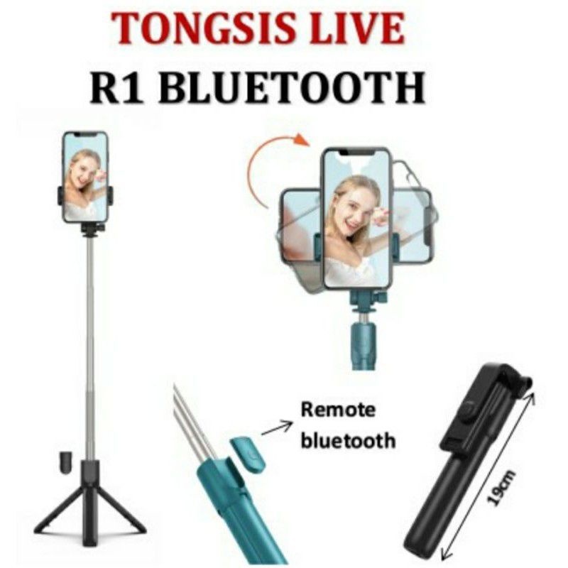 [ ASLI ] New Tongsis Bluetooth LED R1S 3in1 Remote Selfie Tongsis Tripod Blue
