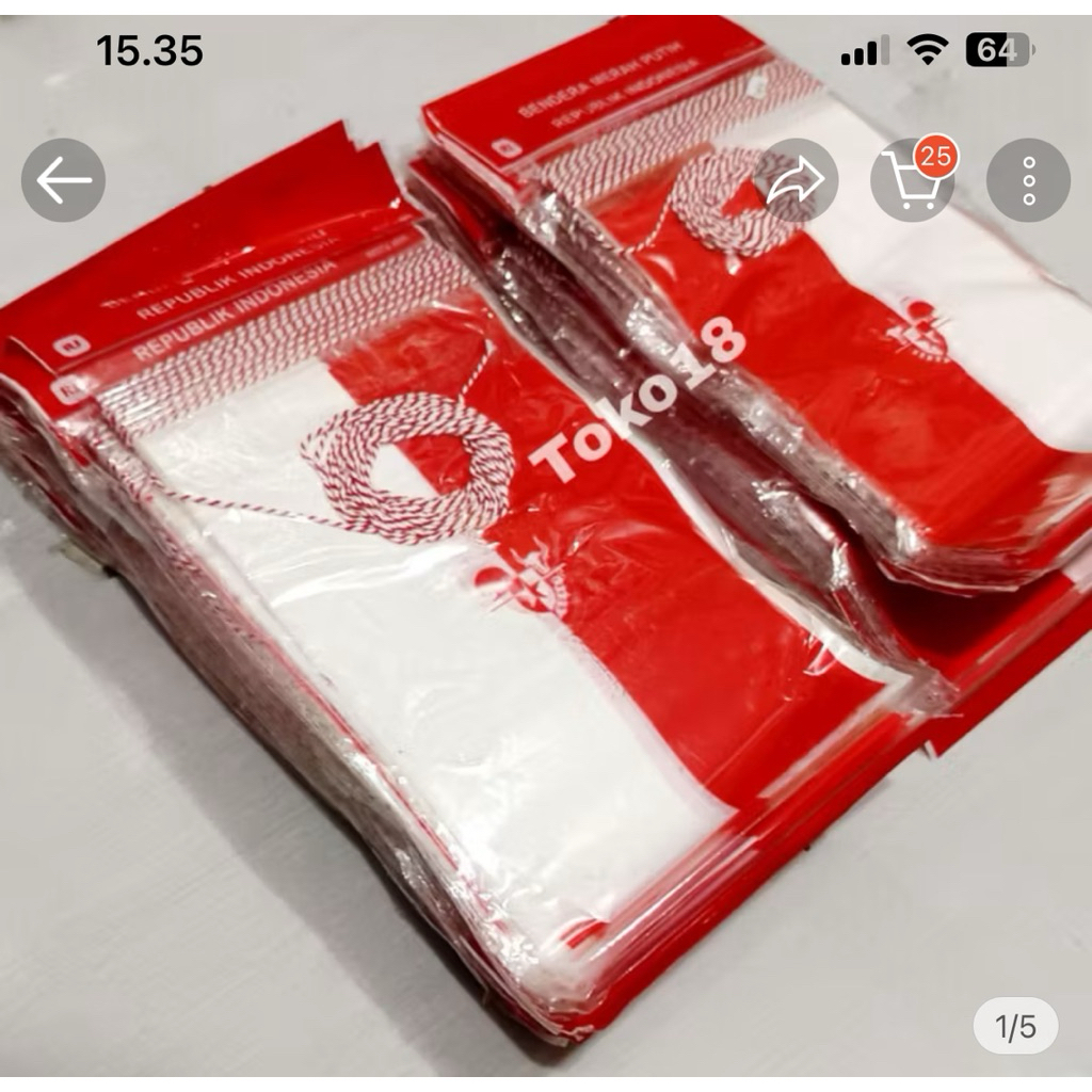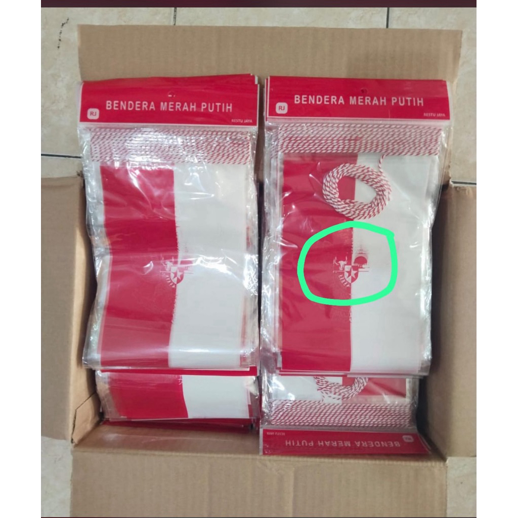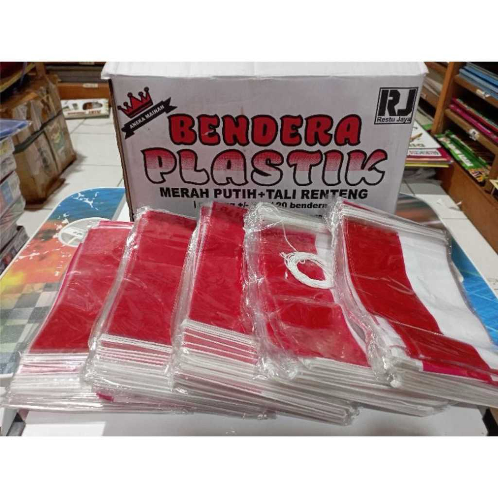 Bendera Plastik Merah Putih Renteng (Sudah Bertali tinggal pasang ) isi 1 ikat / 10 Pak x 20 lembar = 200 lembar Bahan PREMIUM Plastik OPP