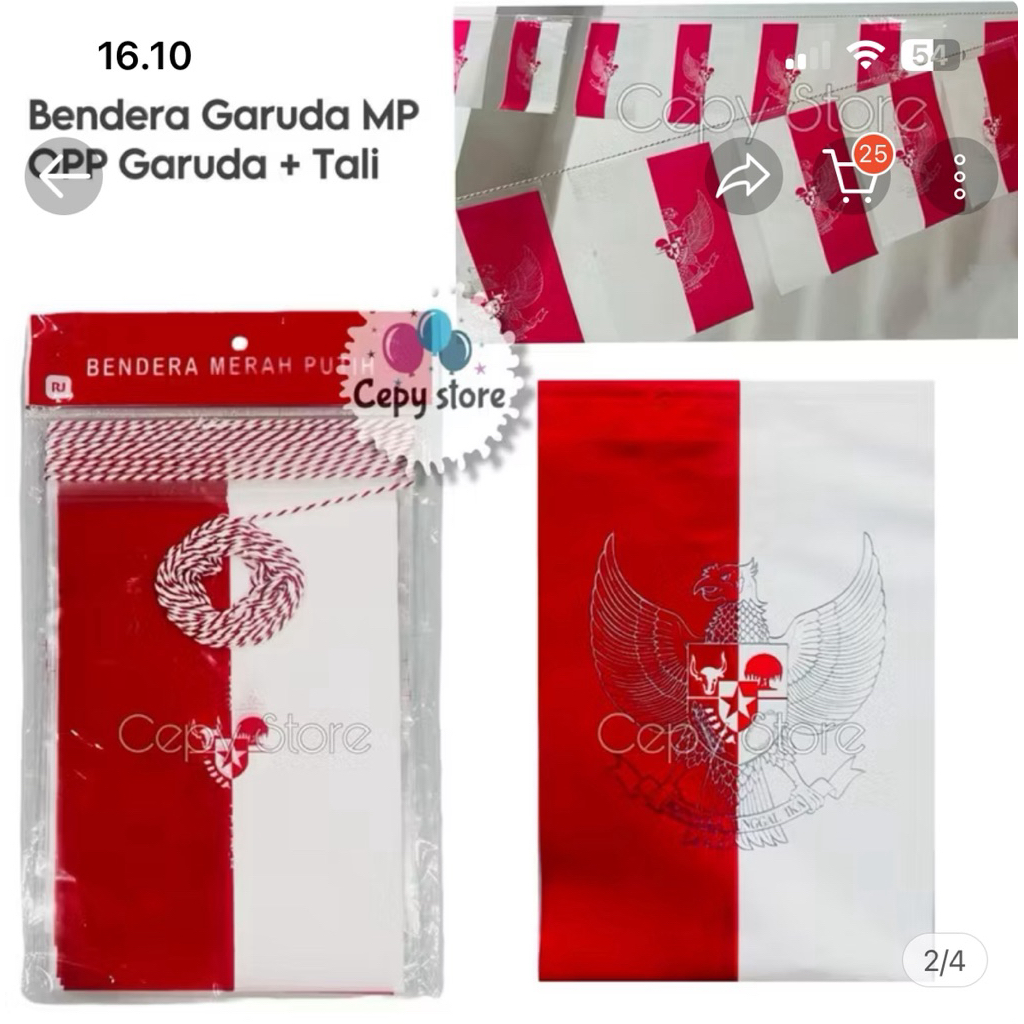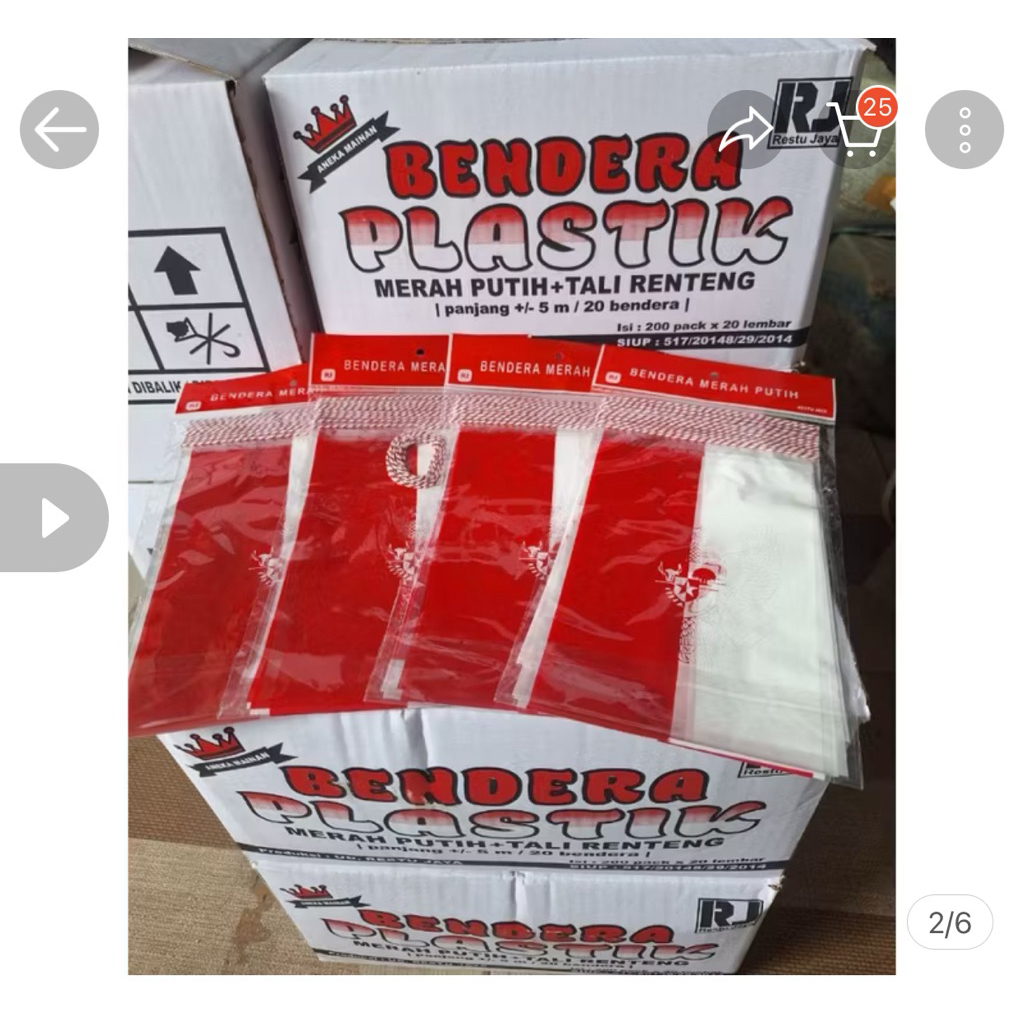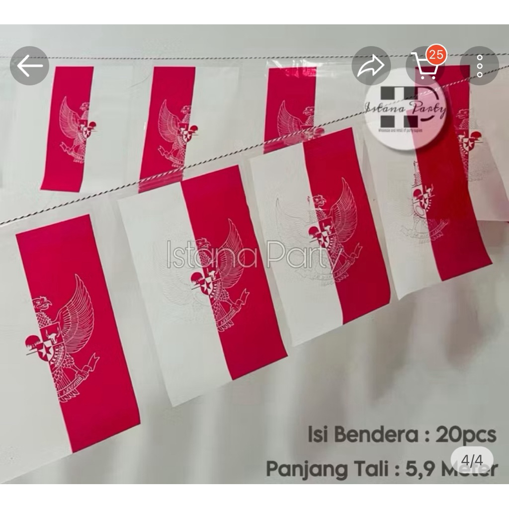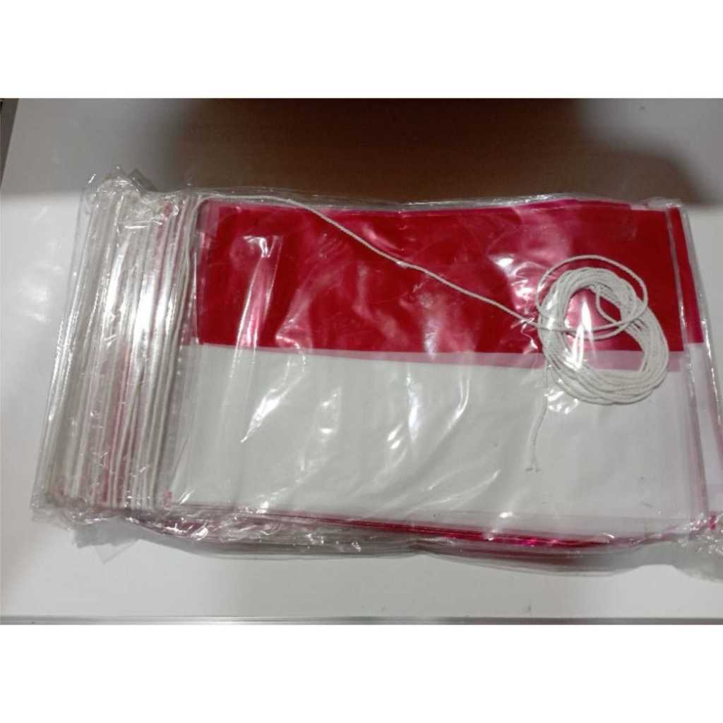 Bendera Plastik Merah Putih Renteng (Sudah Bertali tinggal pasang ) isi 1 ikat / 10 Pak x 20 lembar = 200 lembar Bahan PREMIUM Plastik OPPm