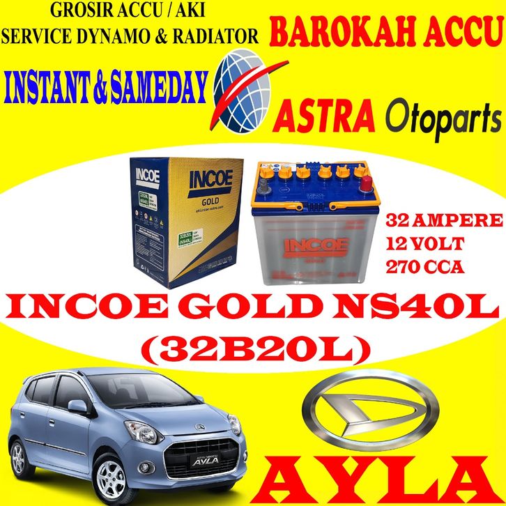 Promo AKI MOBIL DAIHATSU AYLA INCOE GOLD NS40L / 32B20L , 32 AH ASTRA OTOPARTS New
