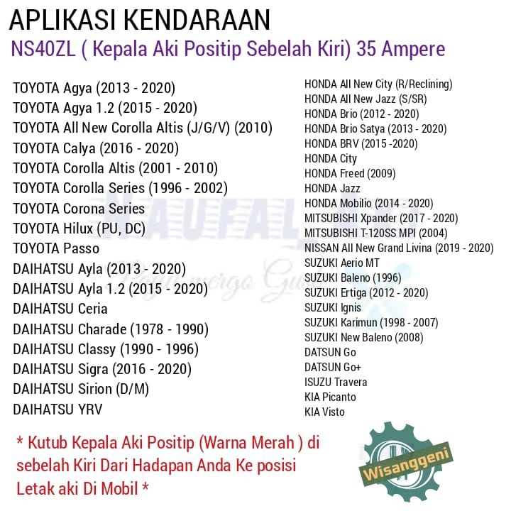Promo Aki Mobil Ayla/Agya/Calya/Sra/Jazz/Erta/Brio/Karimun/Datsun go/Baleno FASTER Ns40L 35 AH New