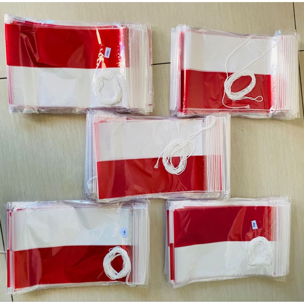 Bendera Plastik HUT RI – Ukuran Kecil Isi Banyak + Tali Siap Pasang [1Kd Isi 20 Pak]