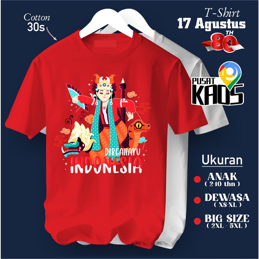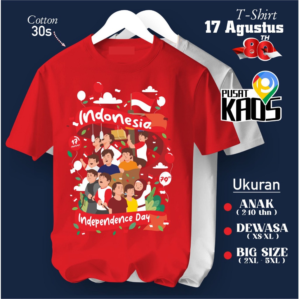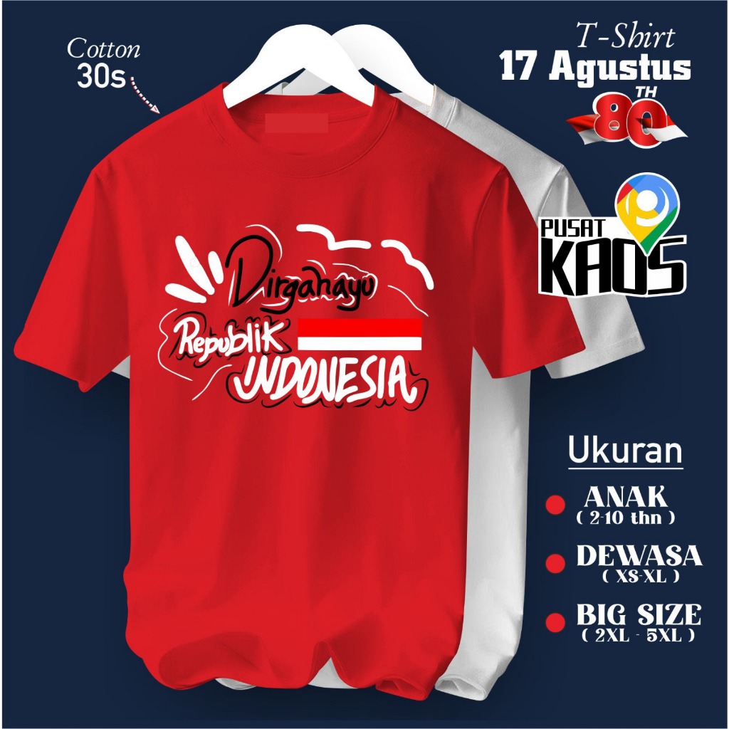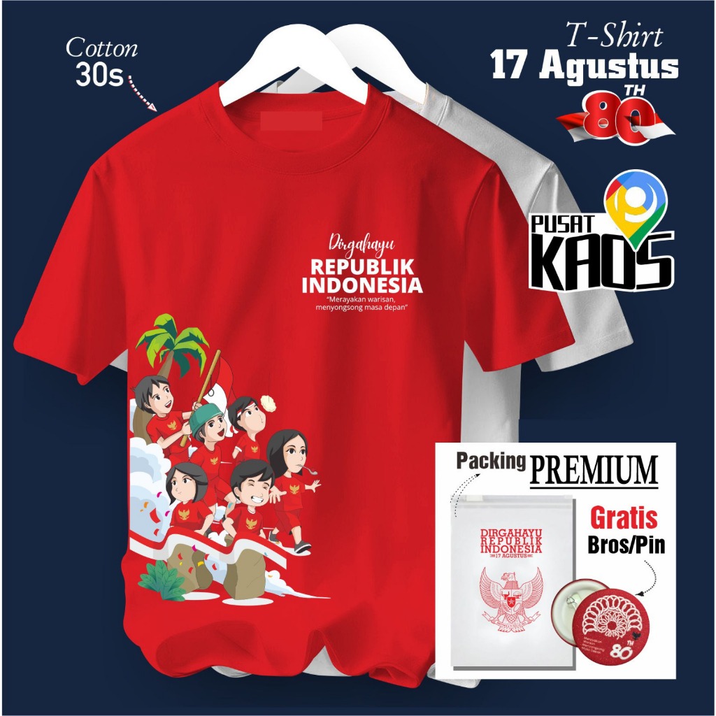 BAJU KAOS DIRGAHAYU INDONESIA 17 AGUSTUS 2025 KAOS HUT RI KE 80 ANAK DEWASA PREMIUM