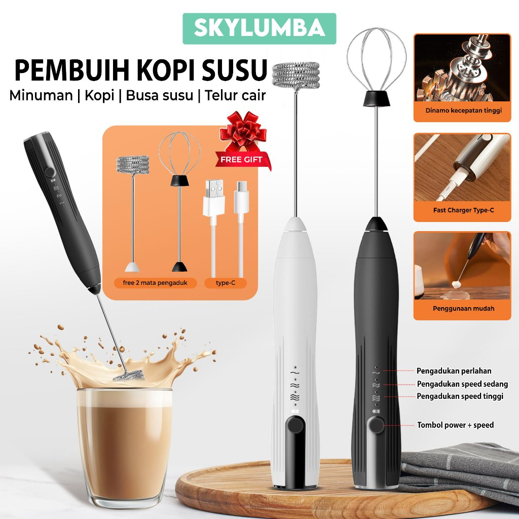 Mixer Hand Skylumba 3IN1 Pembuih Susu Kopi Electric Portable USB 4Watt Blender Milk Coffee Pengocok Telur EW06
