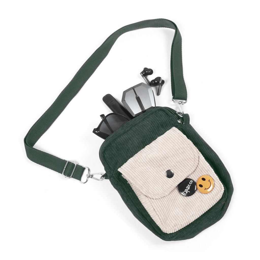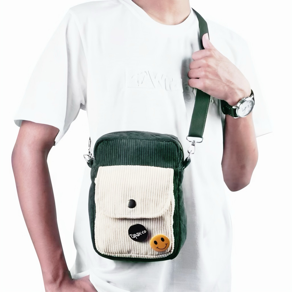 Tapaxco Tas Selempang Danito - Mini Slingbag Uniseks Tas Pria Wanita Corduroy Polos Tapax I FREE 2 BROSS dan BAG CHARM