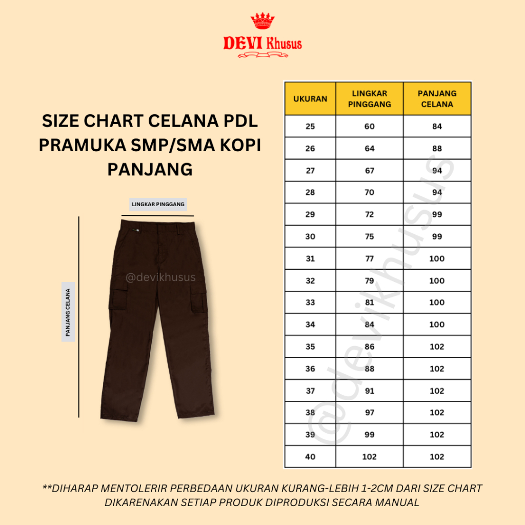 CELANA PDL/CARGO PRAMUKA KOPI SMP/SMA PANJANG - DEVI KHUSUS SERAGAM SEKOLAH