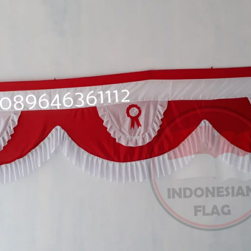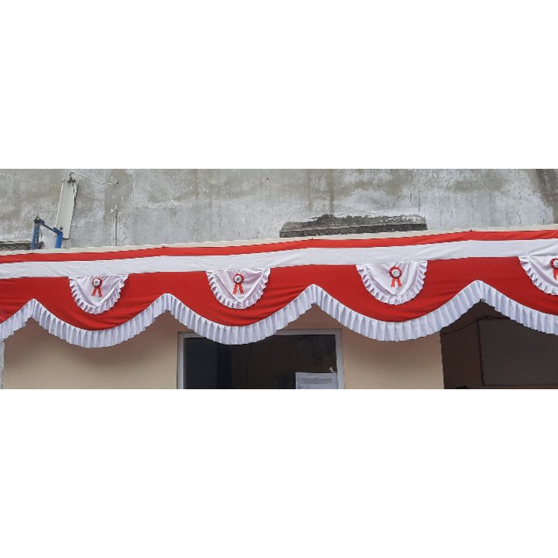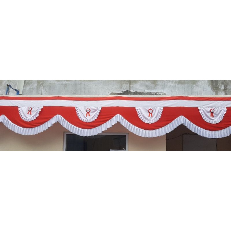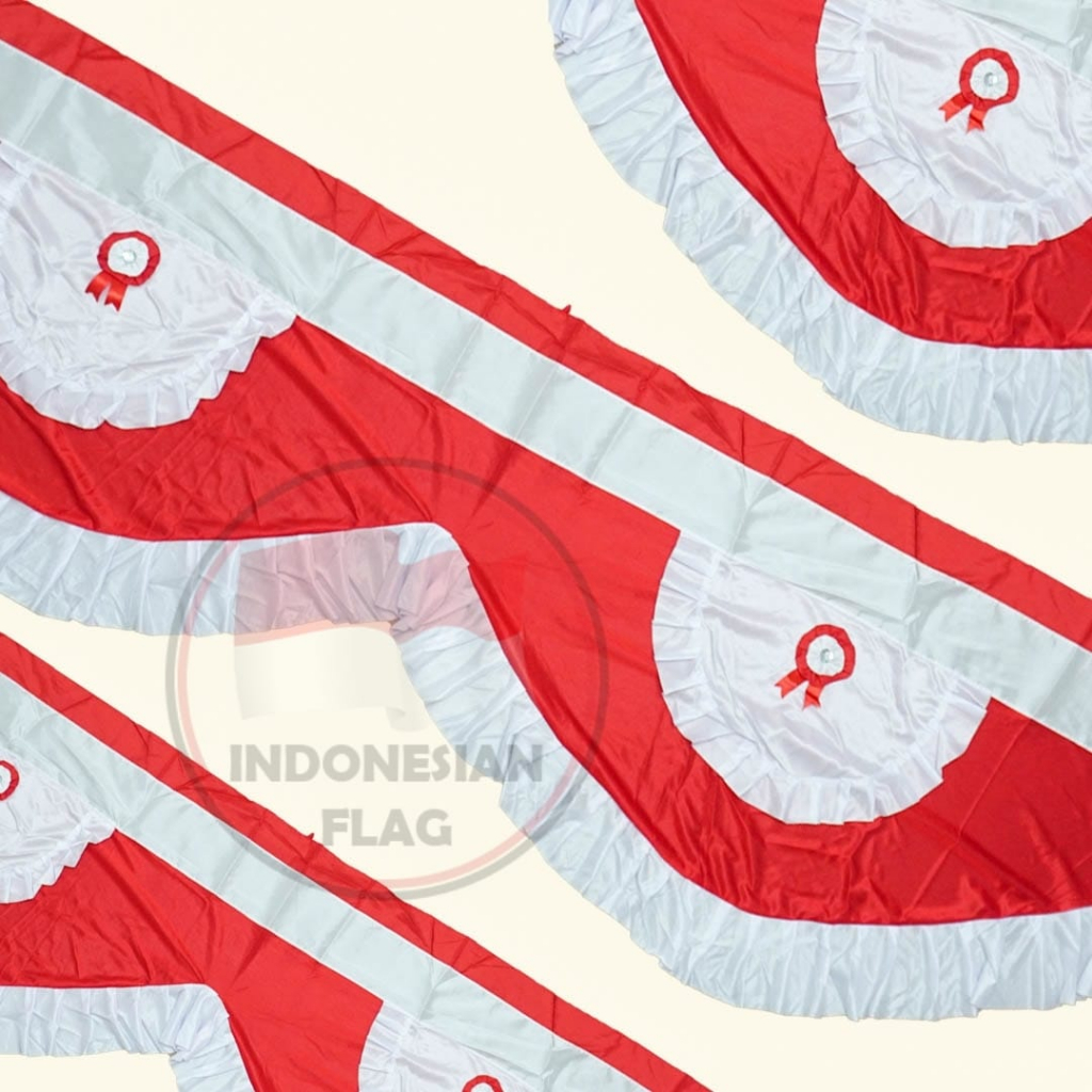 Bendera Merah Putih Backdrop Rumbai Pita 10 Meter Tinggi 75Cm 10 Gelombang
