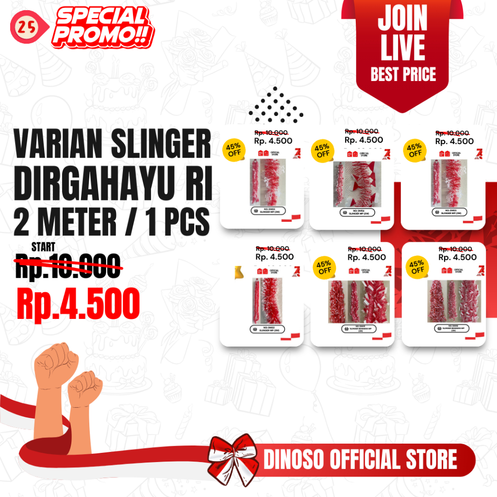 DINOSO Slinger Tinsel Merah Putih Banyak Motif Dirgahayu Hut Ri Hiasan 17 Agustus