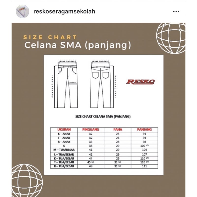 RESKO - CELANA PDL PRAMUKA COKLAT SD SMP SMA- CELANA PDL - CELANA PRAMUKA -