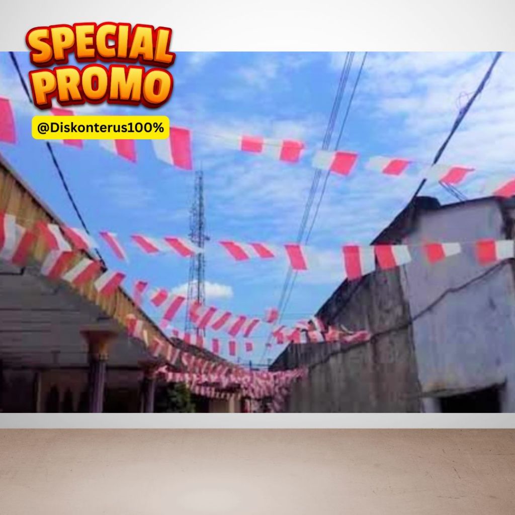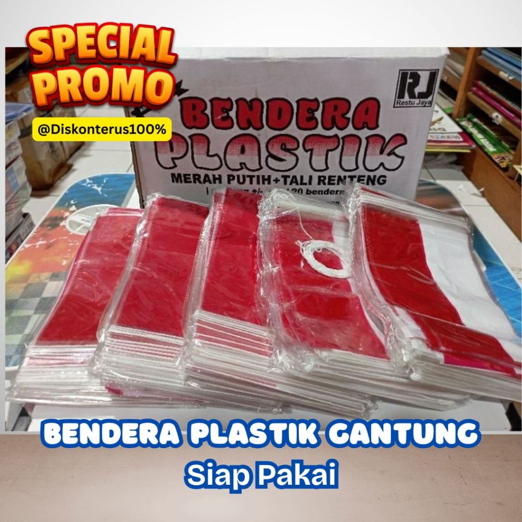 [1 Pack] Bendera Plastik Tali Siap Pakai / Bendera Hiasan Jalan Kampung / Bendera Dekorasi/ Bendera plastik 17 Agustus