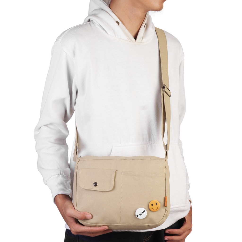 Pushop - Slingbag Kanvas Yahiko Tas Selempang - Unisex ( FREE PIN )