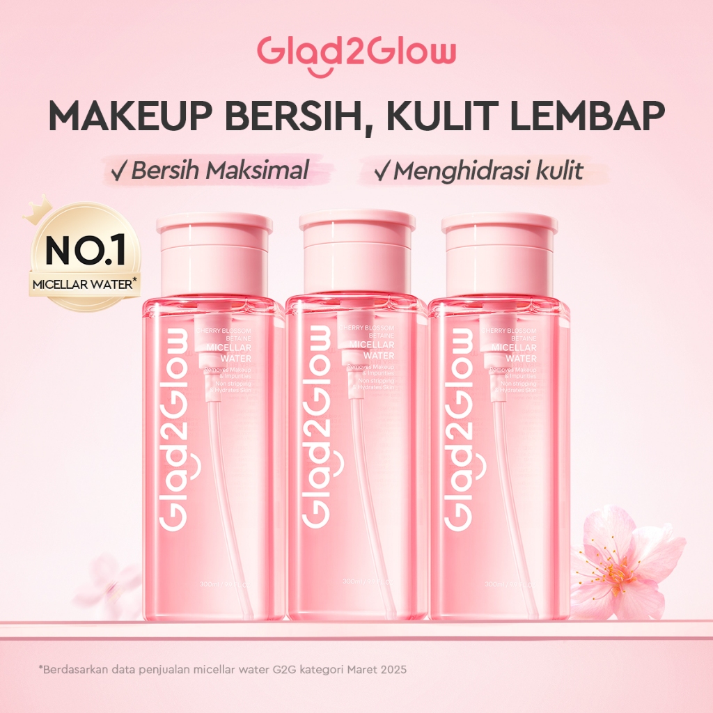 Micellar Water Glad2glow Cherry Blossom 300ml Menghapus Makeup Waterproof Centella Lembut