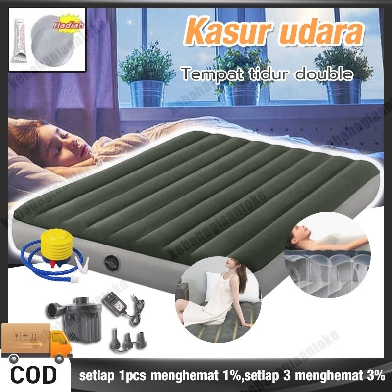 Kasur Angin Queen Size kasur portable Travelling Kasur Tiup Biru Kasur Angin Double/Matras Kasur Angin Karet Sofa Bed Po