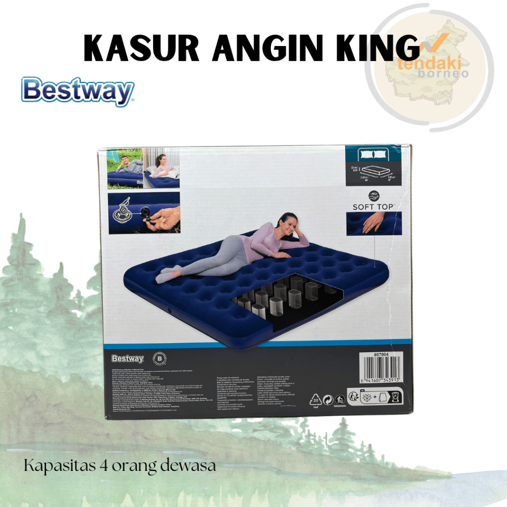 -Bestway 67004 Kasur Angin King Size (203cm x 183cm x 22cm) | Kasur | Kasur Angin Pompa | Kasur Lipat | Kasur Camping |