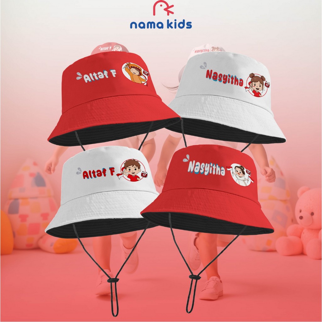 Topi Bucket Anak Custom Sablon Nama Tema Kemerdekaan Topi Anak Sablon Karakter Nama 17 Agustus Inonesia Merdeka Agutusan Topi Bucket Merah Putih