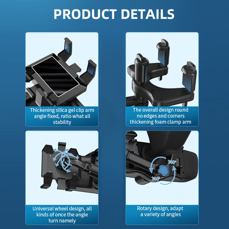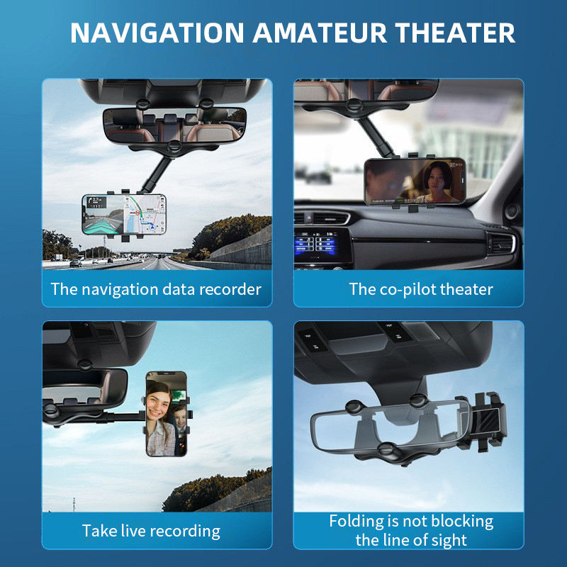 PHONE HOLDER MOBIL KACA SPION PUTAR 360° FLEKSIBEL JEPITAN HANDPHONE AH094 - LAQOE