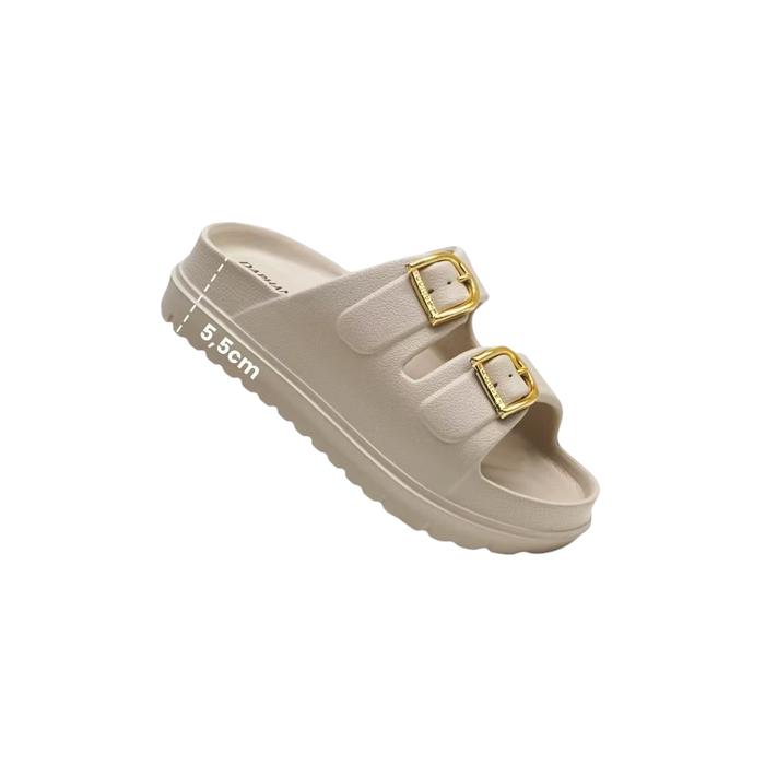 [Star]Sandal Slop Wanita Wedges Anti-Slip Karet EVA Style Korea Jelly Kekinian Tinggi 5cm - Mocca, 36/37