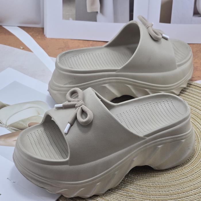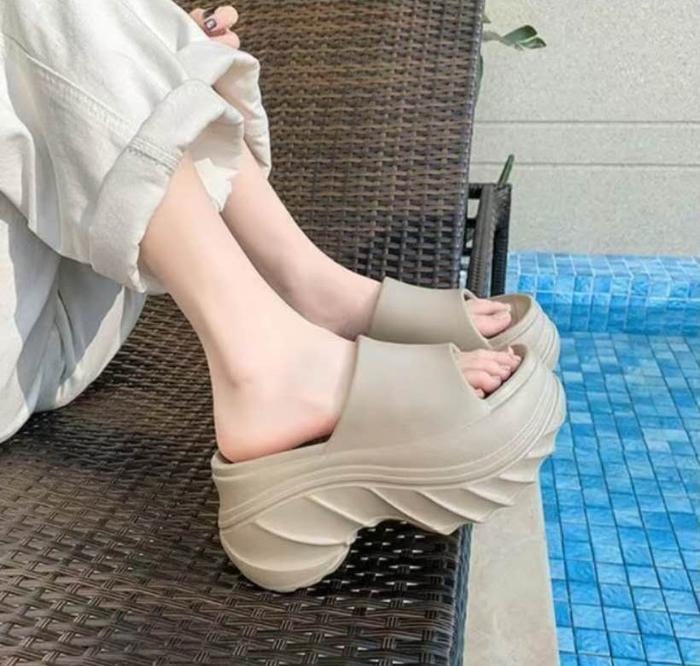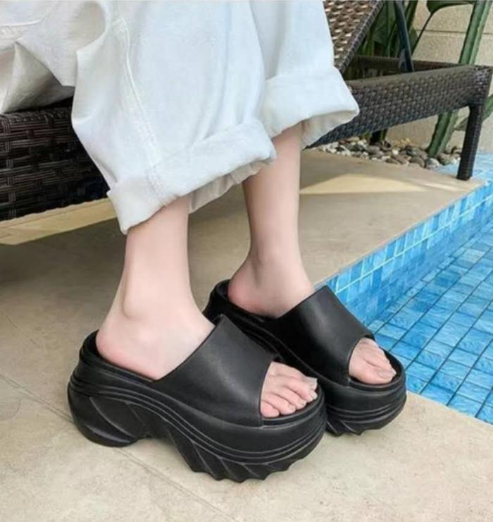[Star][ASFER] Sandal Wanita Wedges Platform Sendal Selop Wanita Tebal Karet EVA Empuk Kekinian - Hitam, 35/36
