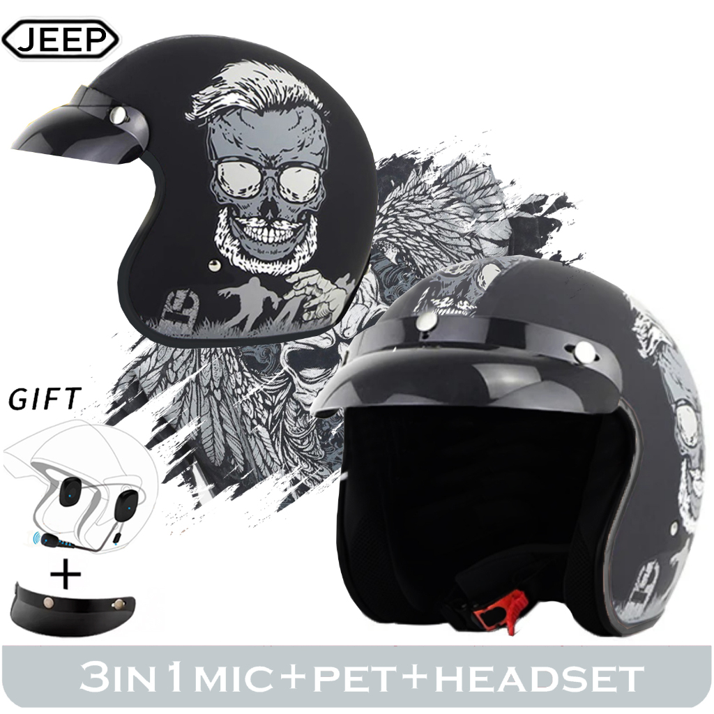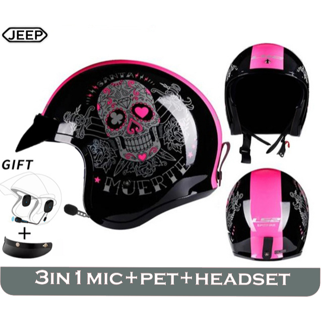 3IN1 FREE MIC PET DAN HEADSET JEEP FREE MIC INTERCOM HELM SNI PREMIUM CAT SHADOW GLOSSY 3D