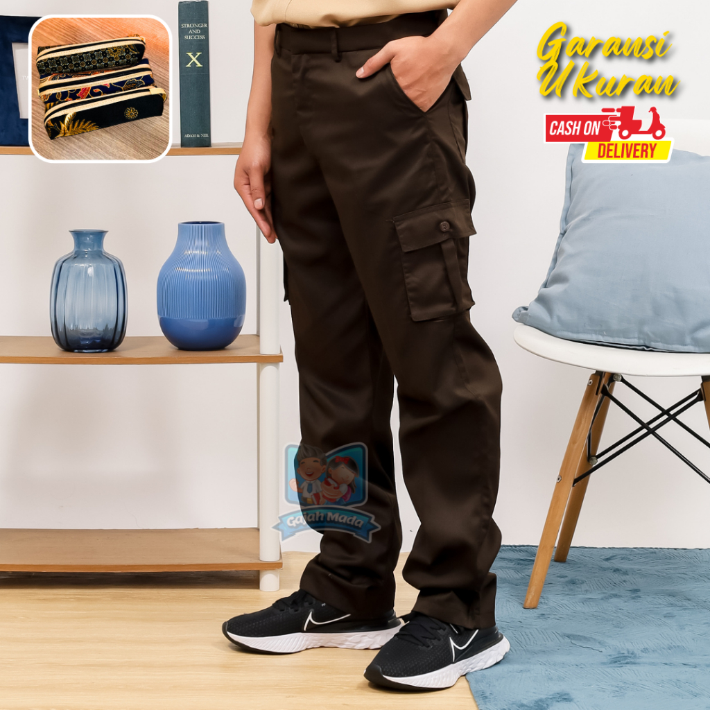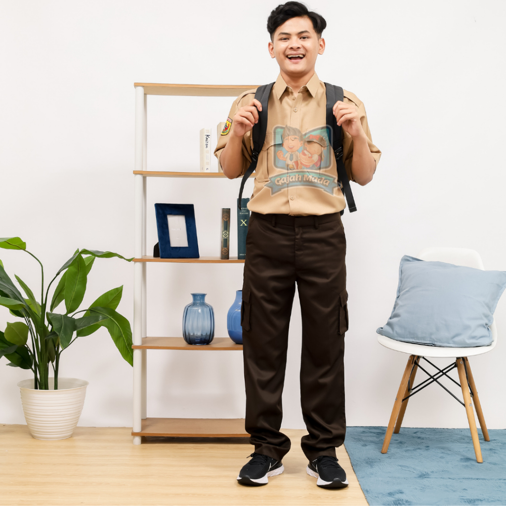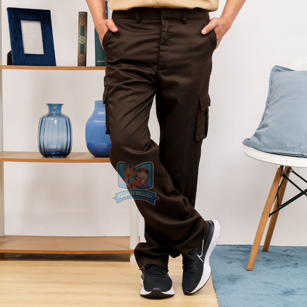 CELANA PANJANG CARGO PDL SMP SMA COKLAT BAHAN NAGATA DRILL -- GAJAH MADA UNIFORM