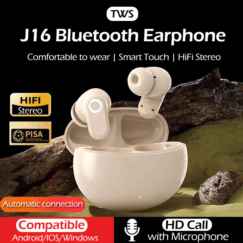 SONIC J16 TWS Bluetooth Earphone with Mic Touch Stereo Earbuds Wireless Earphone Handset Bluetooth Headset Bass Hedset
