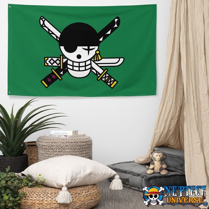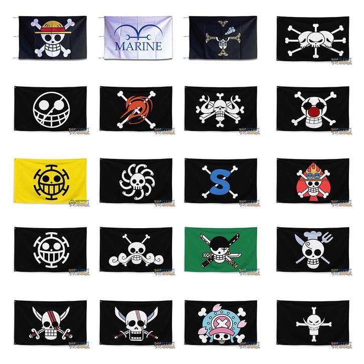 Bendera One Piece - Desain Bendera Luffy Jolly Roger untuk Penggemar One Piece - Bahan Satin Peles - Ukuran Kecil hingga