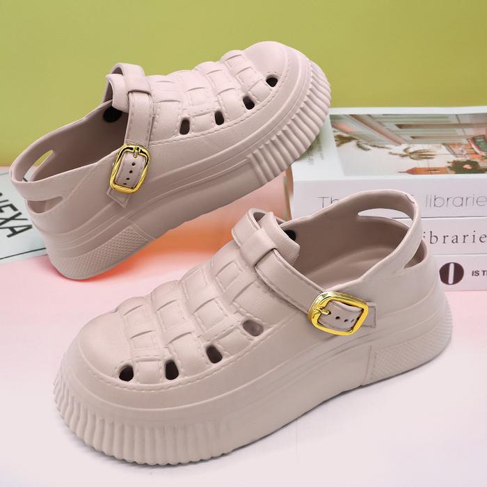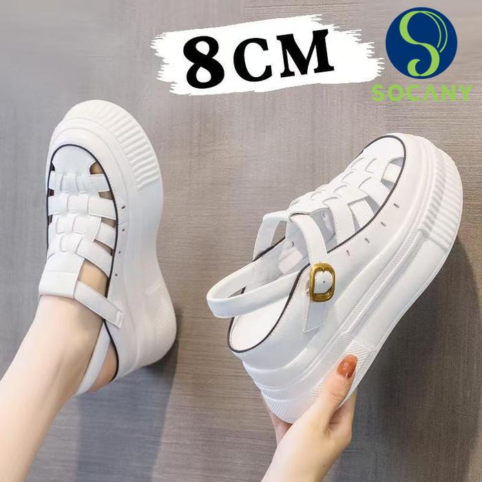 [Star]Socany Sandal Wedge Wanita Korean Premium Dengan Desain Elegan Tinggi 8cm Bahan EVA - Putih, 36-37