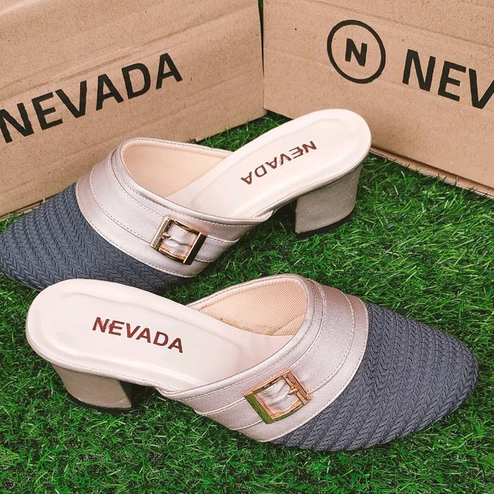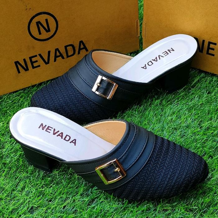 [Star]Sandal Wanita NEVADA slop Shoes Selop Sendal - hitam, 37