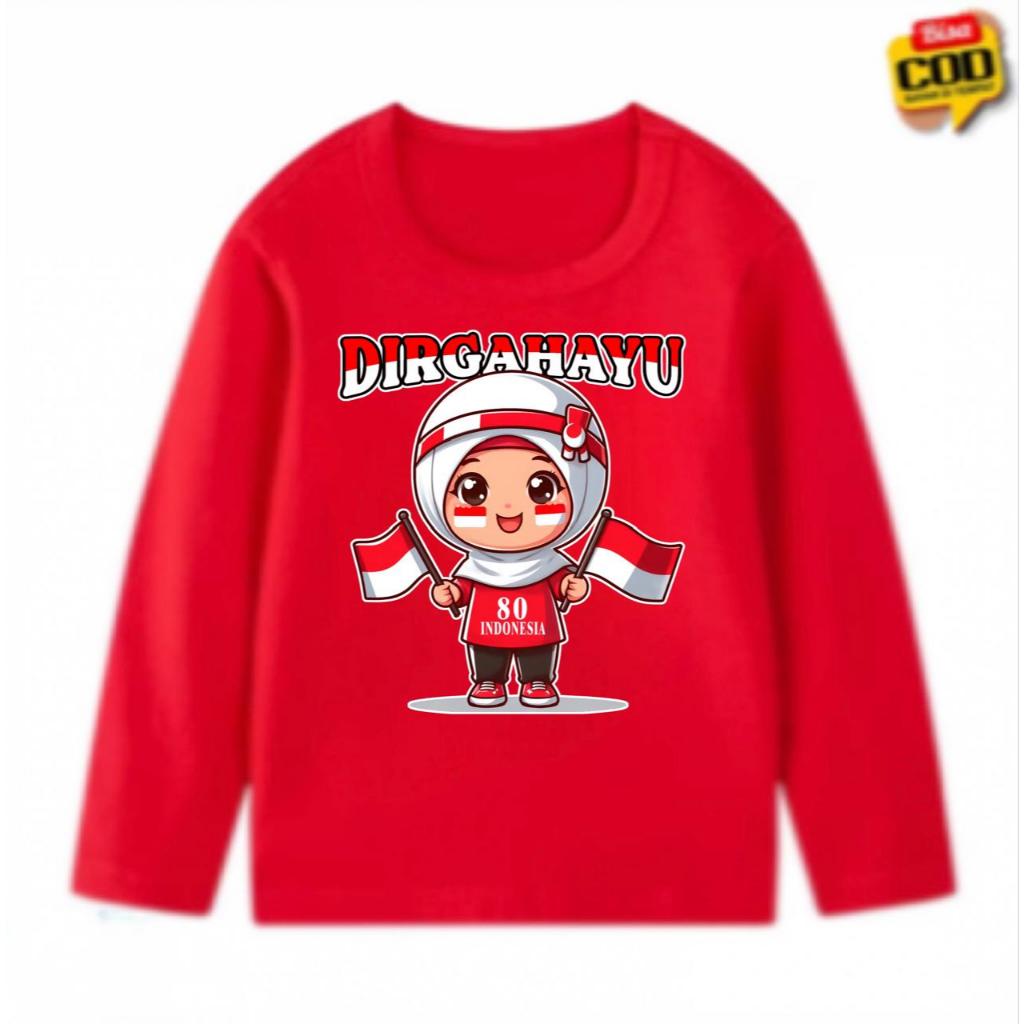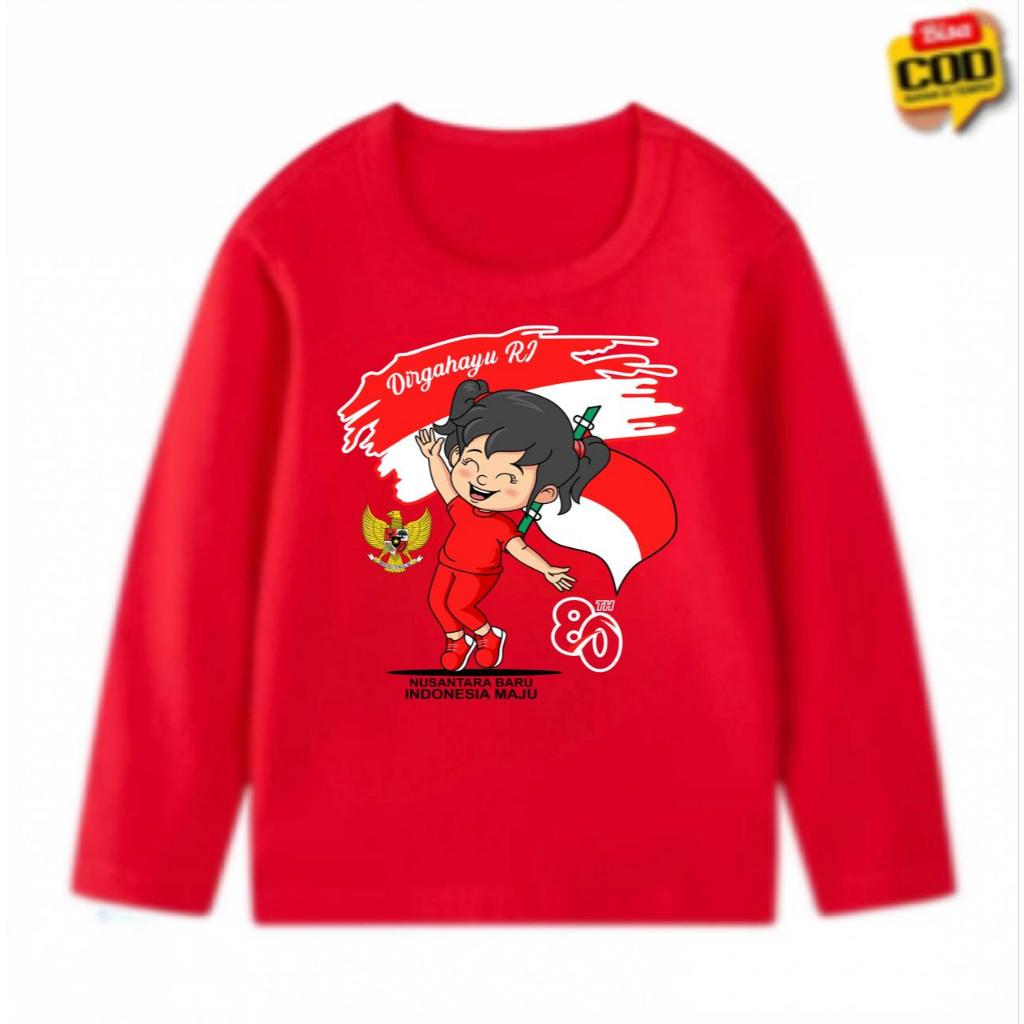 Dirgahayu Kaos Anak Unisex 80 Indonesia/Atasan Lengan Panjang 17 Agustus 3-14 Tahun
