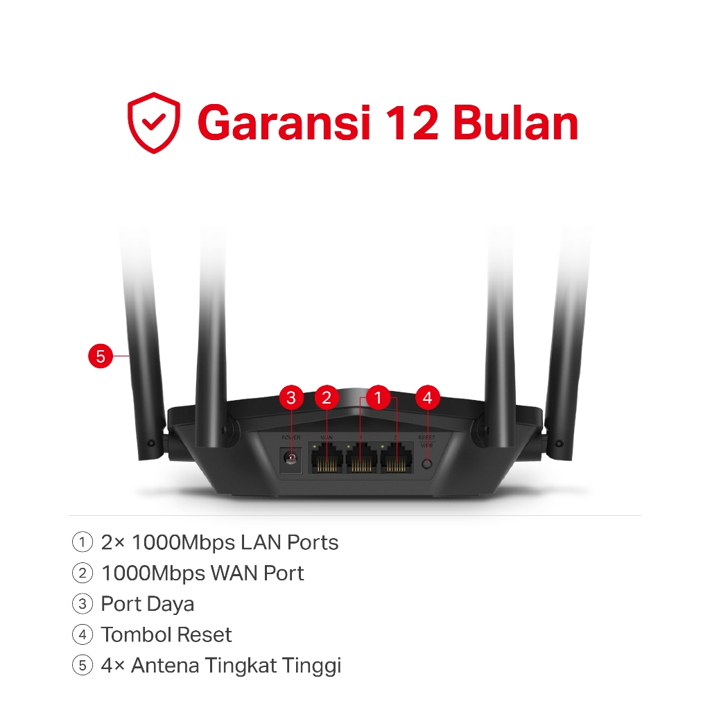 Mercusys | MR60X | Router Wi-Fi 6 AX1500 | Dual Band | 3× 1000Mbps LAN | Wirless Access Point | WPA3