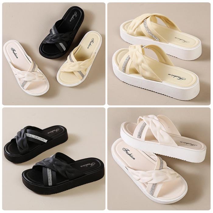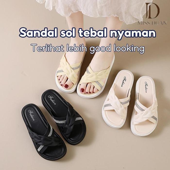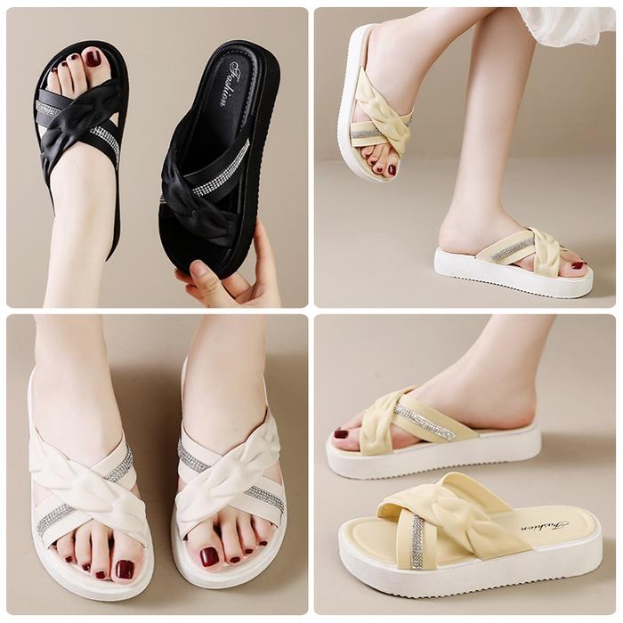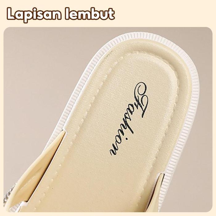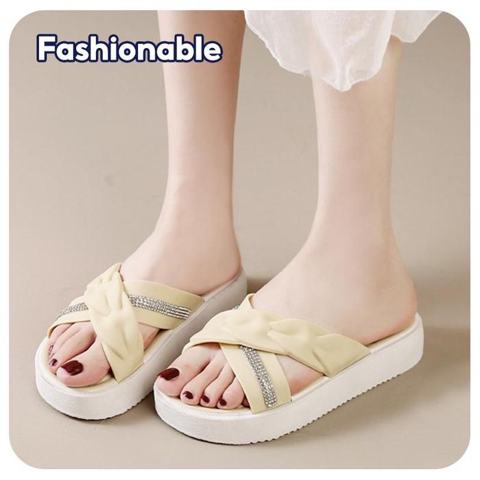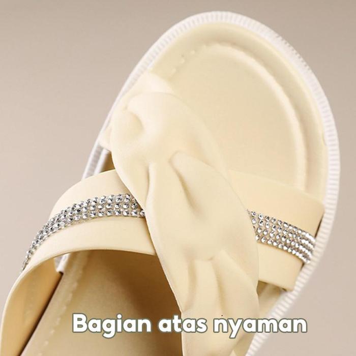 [Star]Sandal Wanita Slip On Jelly Sandal Flat Karet Sendal Selop Fashion Wanita Perempuan - Rice White, 36/37, Standar
