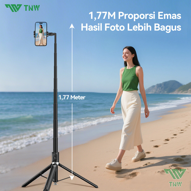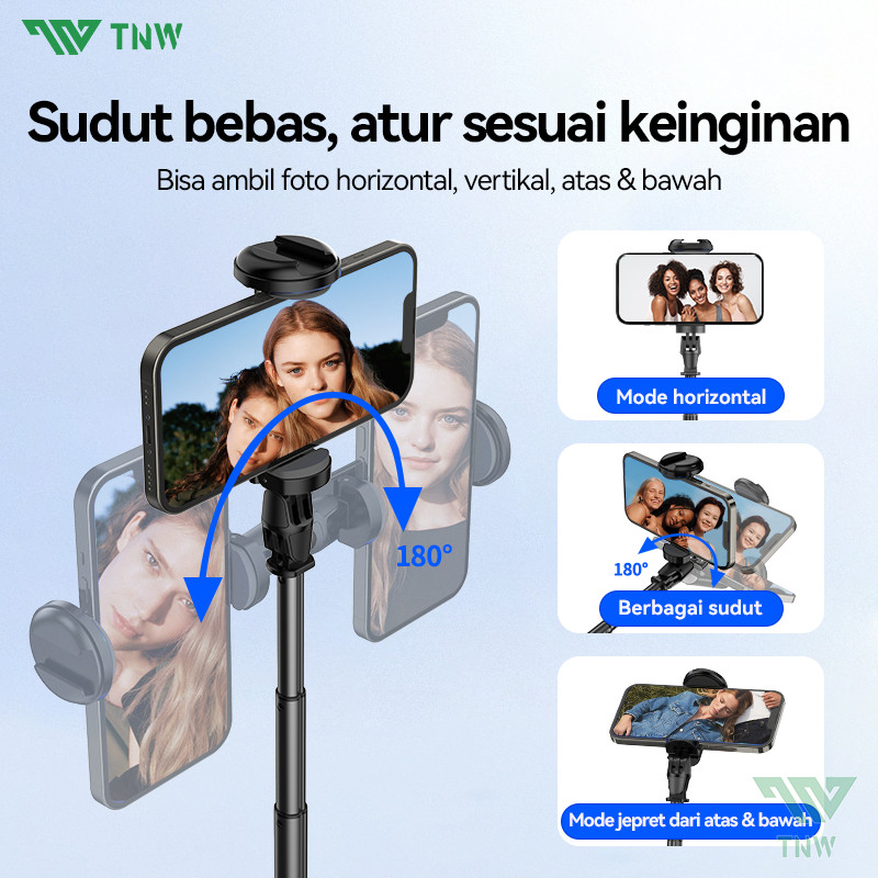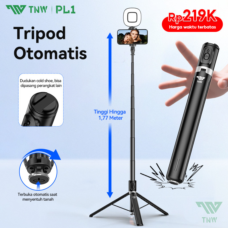 TNW PL1 Tripod Automatic Pop Up Selfie Stick Tongsis Tripod Bluetooth 177cm Aluminium Tripod with Magnetik Remote