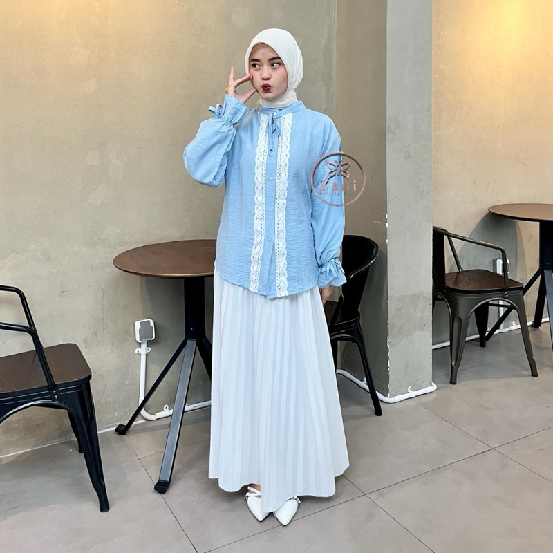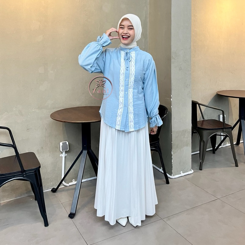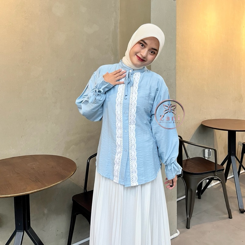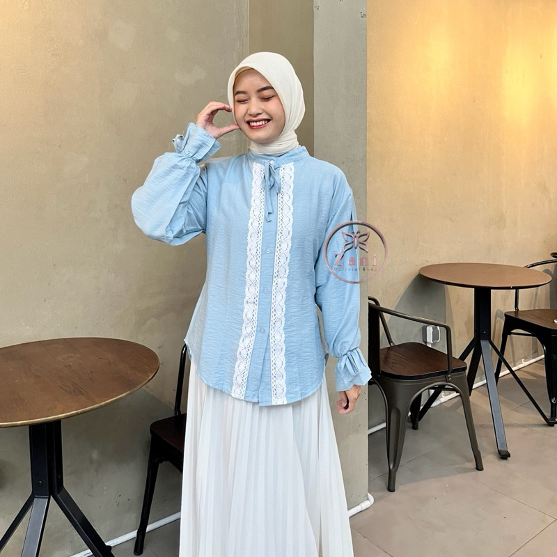 Zani Lyona Blouse Coquette Korean Style Renda Rajut Atasan Wanita Renda Kemeja Casual Kerja LD 110 LD 125 LD 140