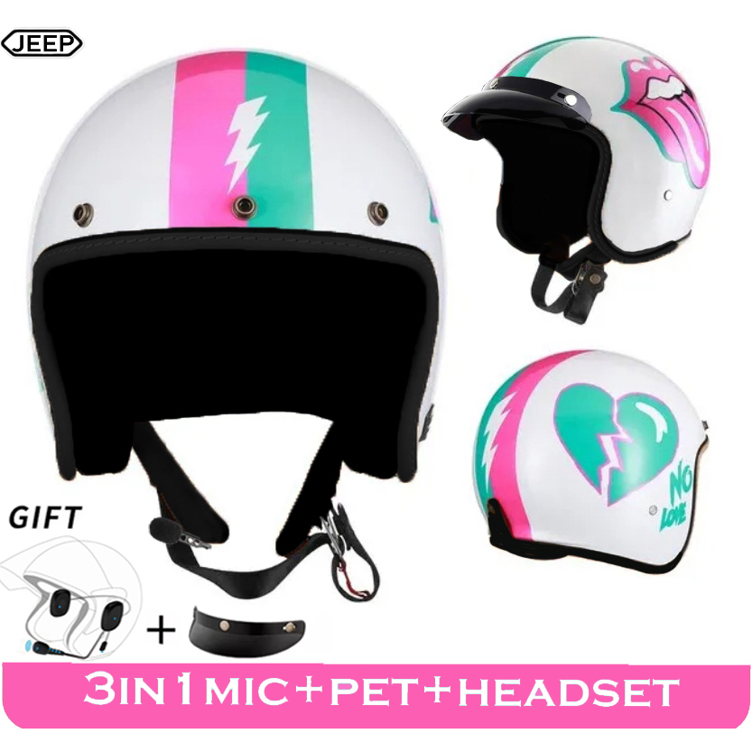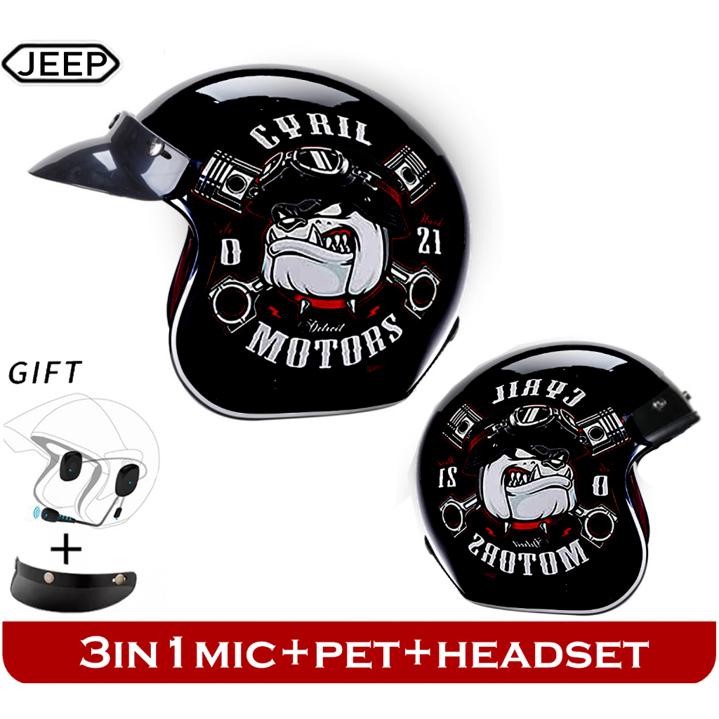 3IN1 FREE MIC PET DAN HEADSET JEEP FREE MIC INTERCOM HELM SNI PREMIUM CAT SHADOW GLOSSY 3D