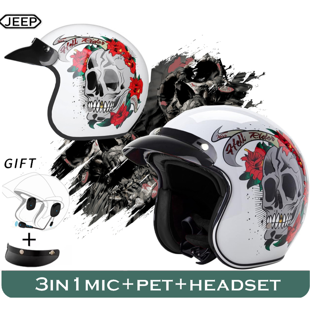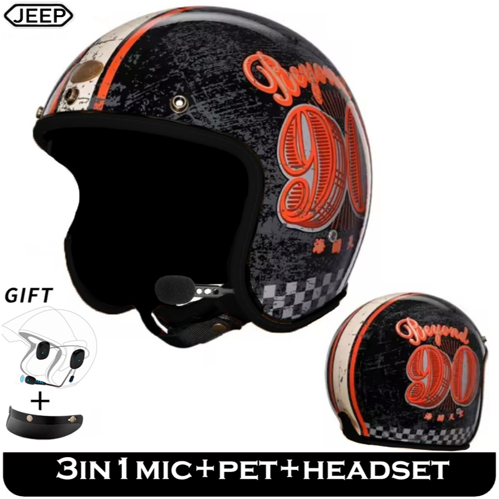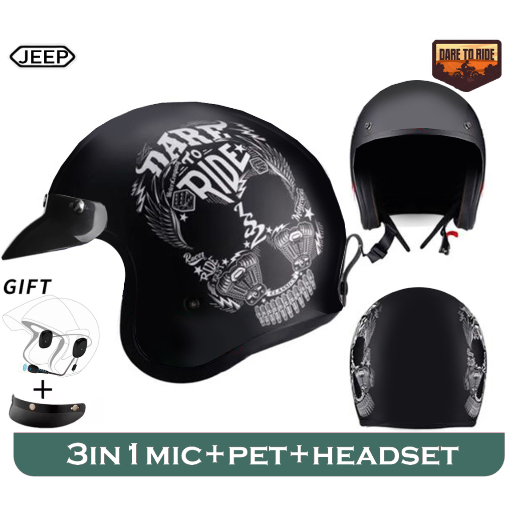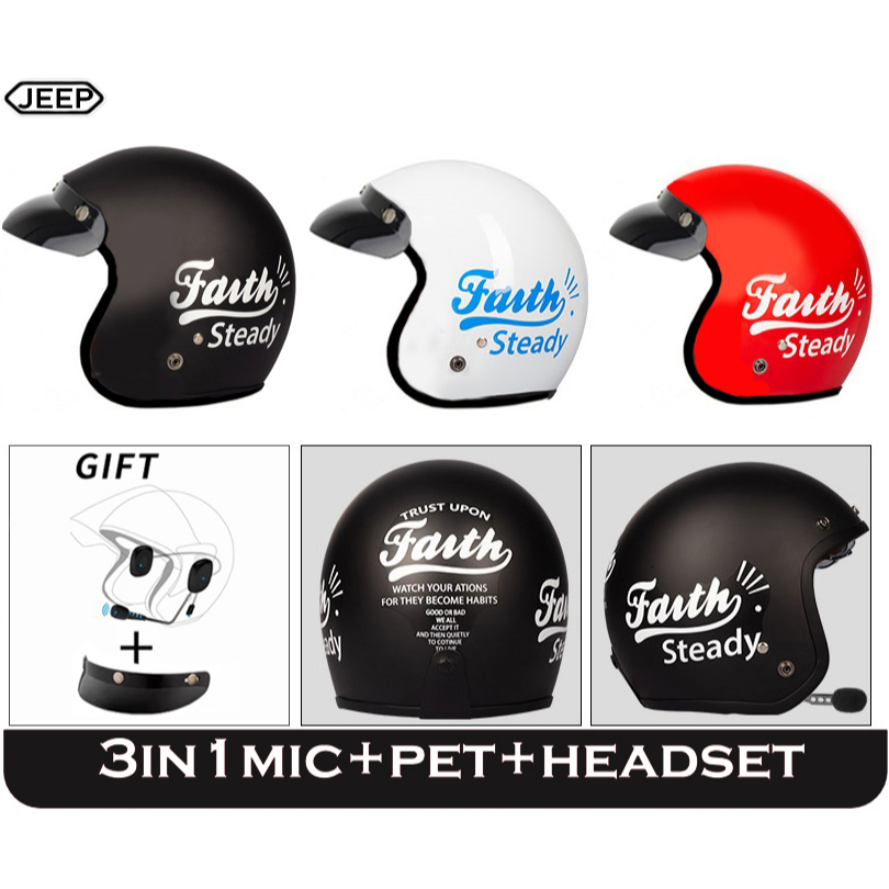 3IN1 FREE MIC PET DAN HEADSET JEEP FREE MIC INTERCOM HELM SNI PREMIUM CAT SHADOW GLOSSY 3D